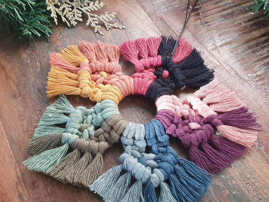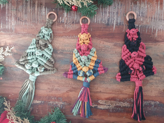 Christmas tree hanging macrame rainbow sustainable bunting eco gift colourful ornament decor bauble festive yuletide xmas fibre art