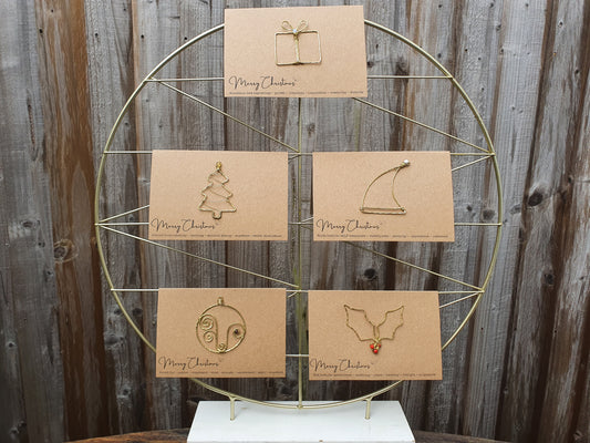Crystal Christmas cards, eco wire art Christmas symbol and gemstone festive greetings cards, blank inside set of 5 unique holiday cards