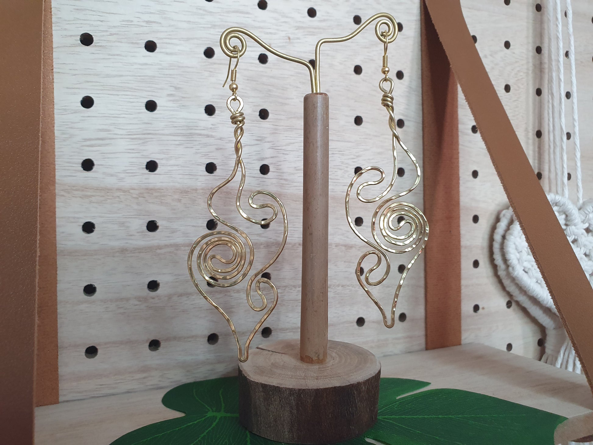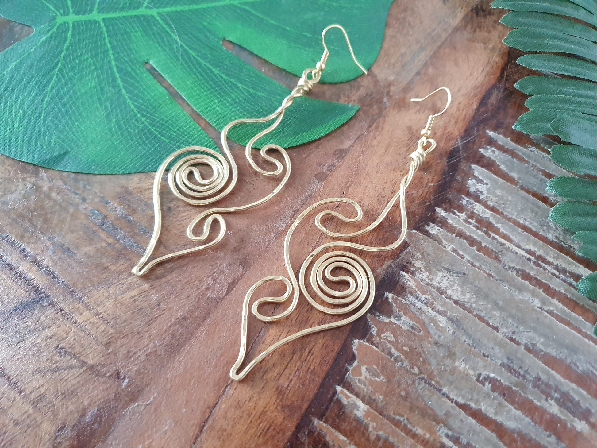 These beautiful abstract yet minimalist gold spiral earrings are made from sculpted hammered brass wire. The perfect versatile pair for your inner boho babe, made to take you from day to night, beach to club.