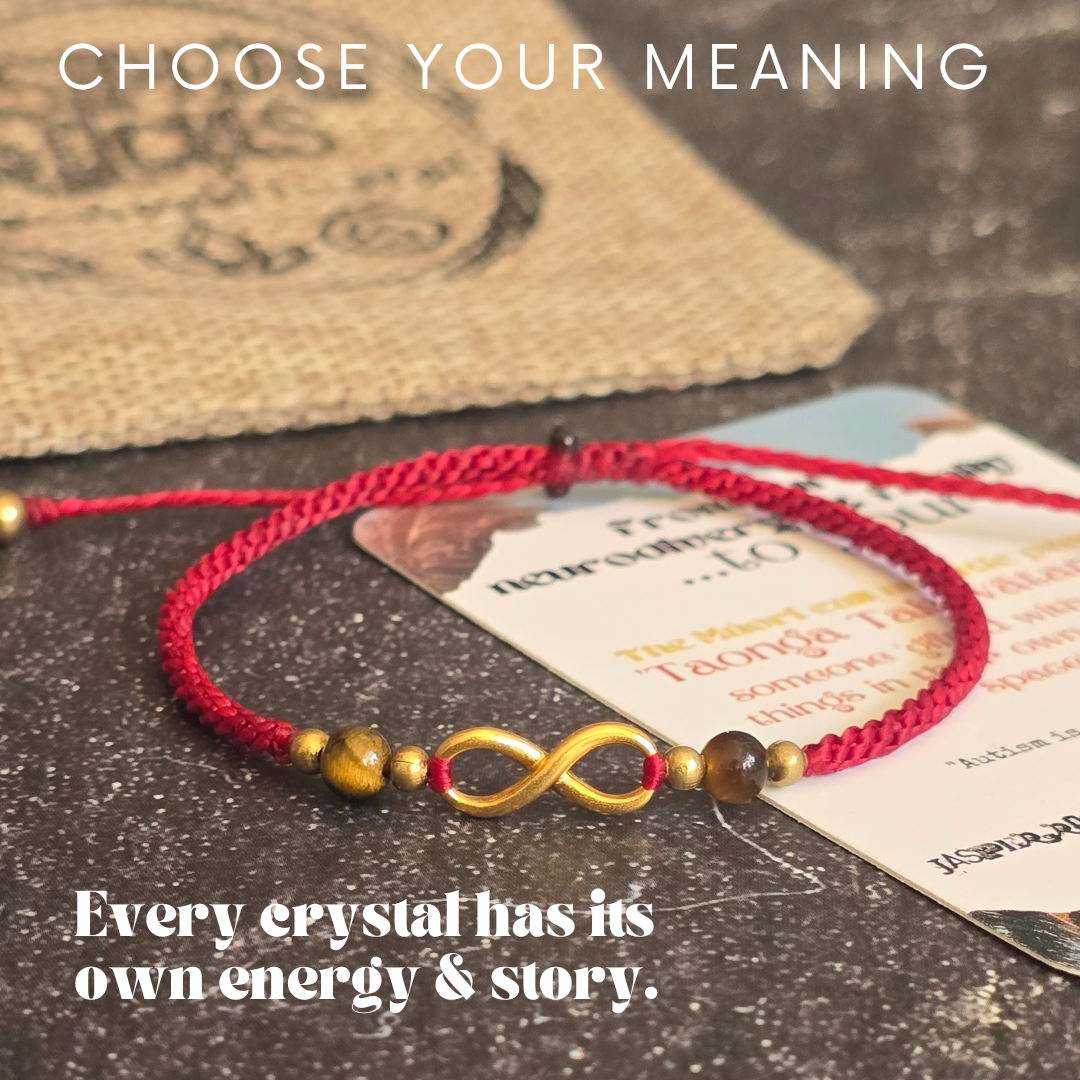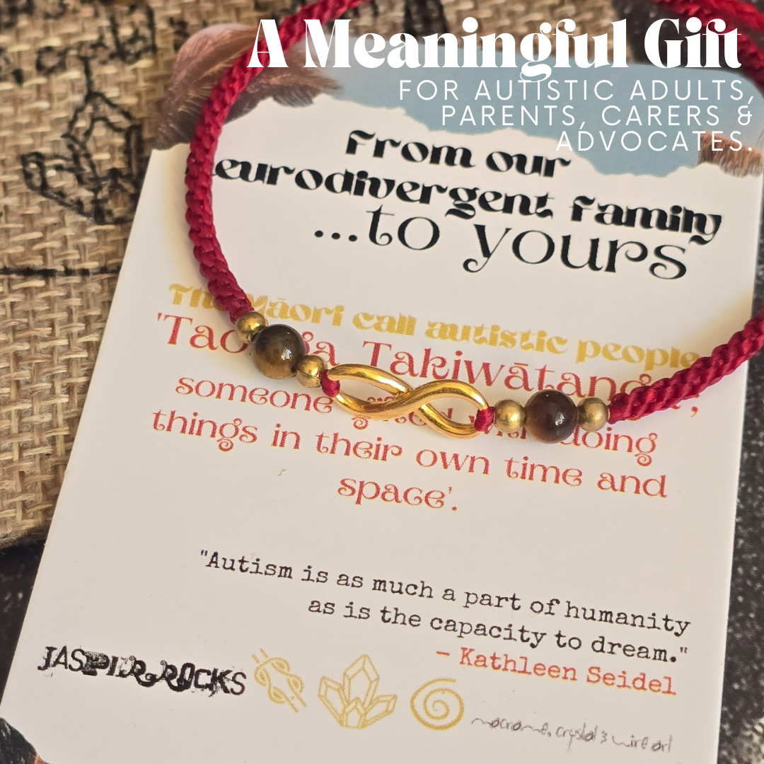 Autism Infinity Bracelet, Custom Cord & Crystal, Neurodiversity Gift, Autism Pride Jewellery, Brass or Sterling Silver, Personalised