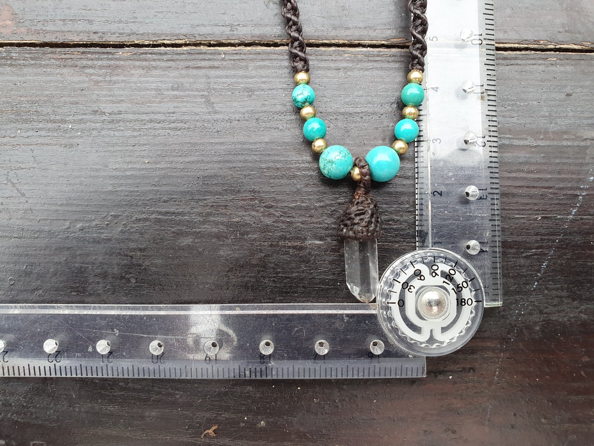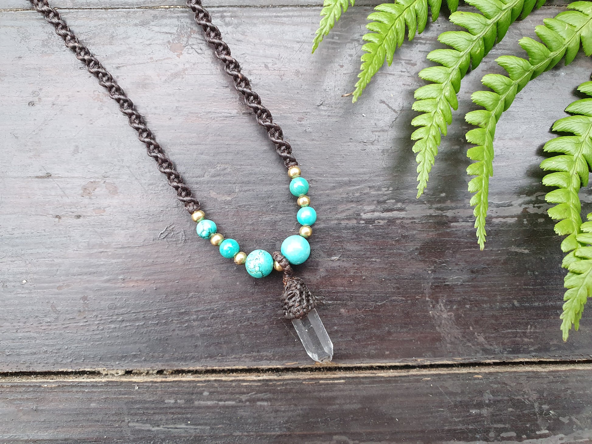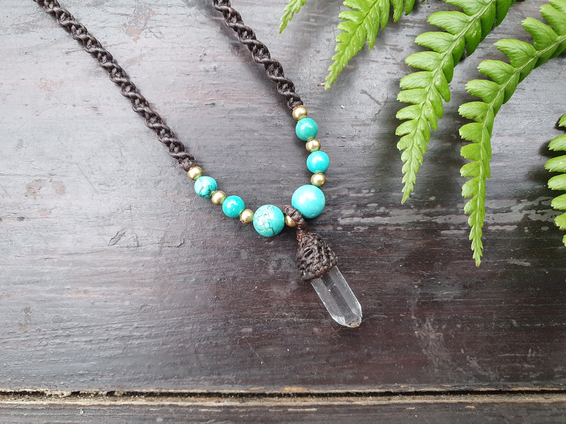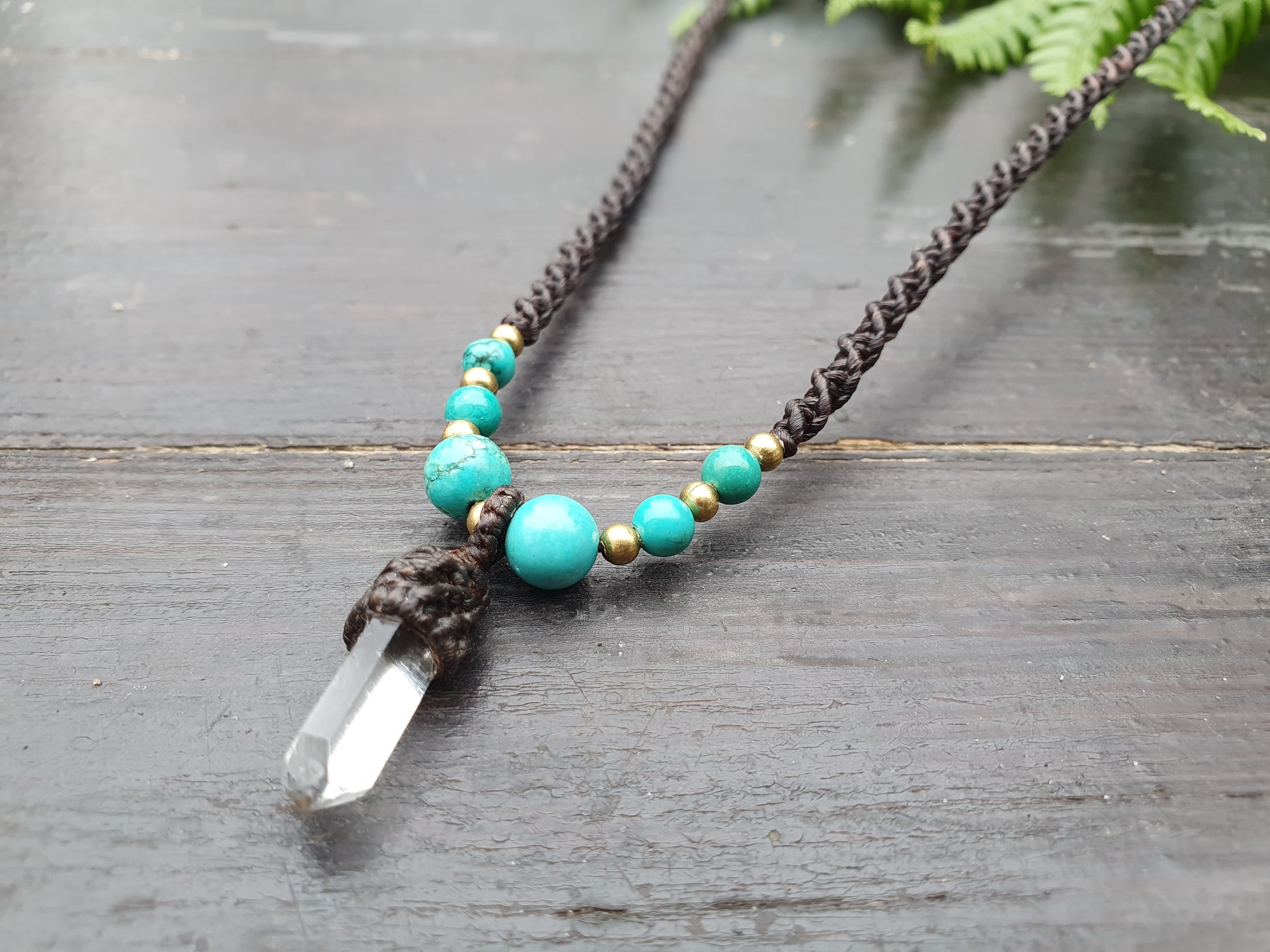 Clear quartz tower turquoise necklace, macrame crystal necklace, boho tribal buddhist amulet, necklace for men, amplification necklace