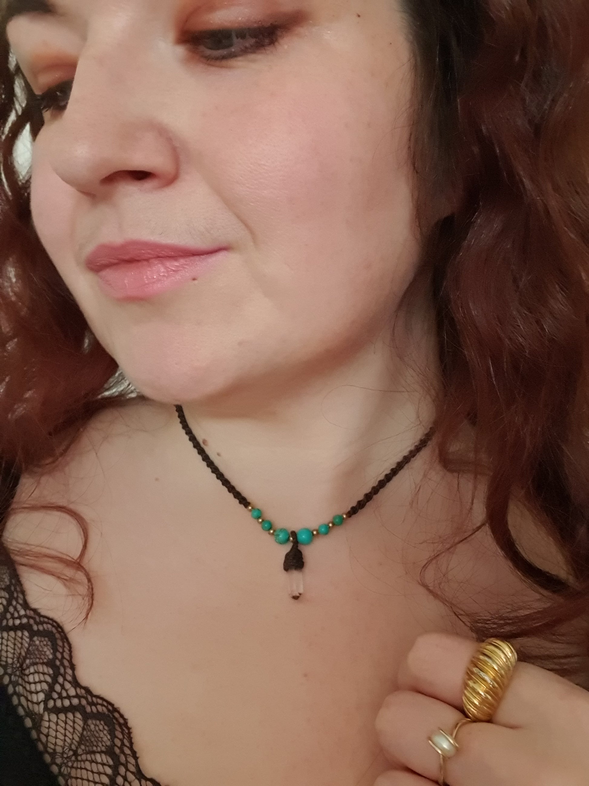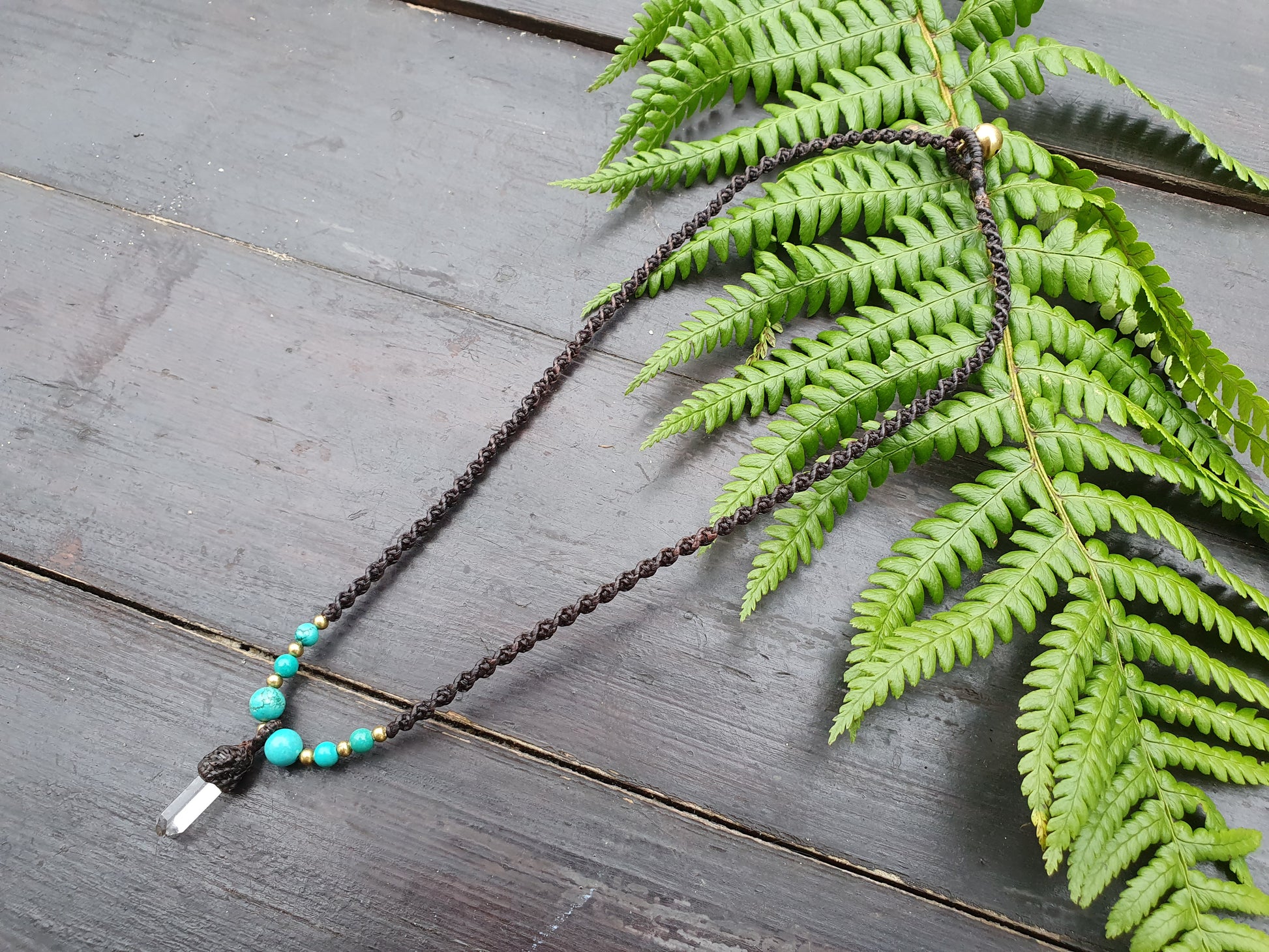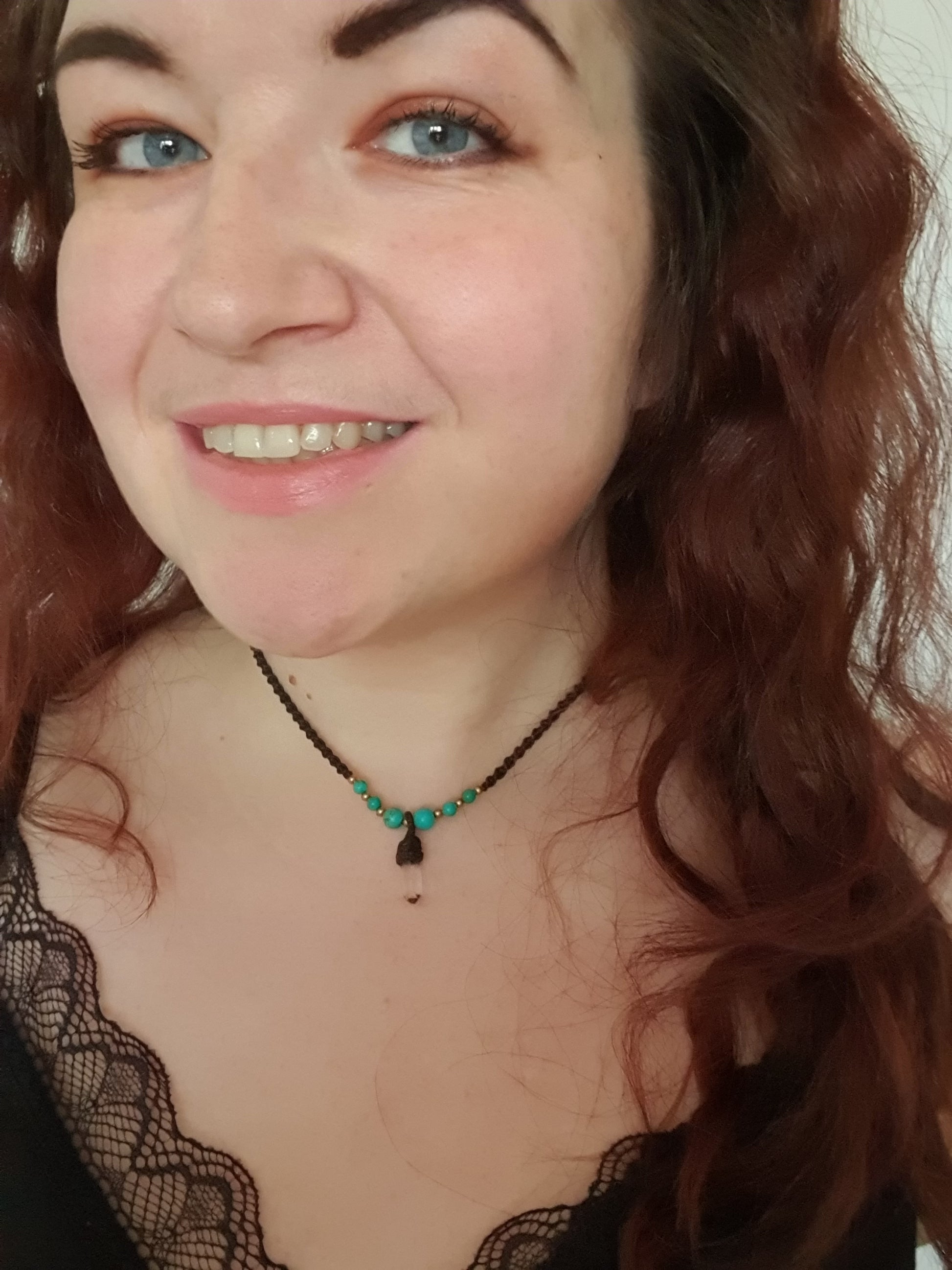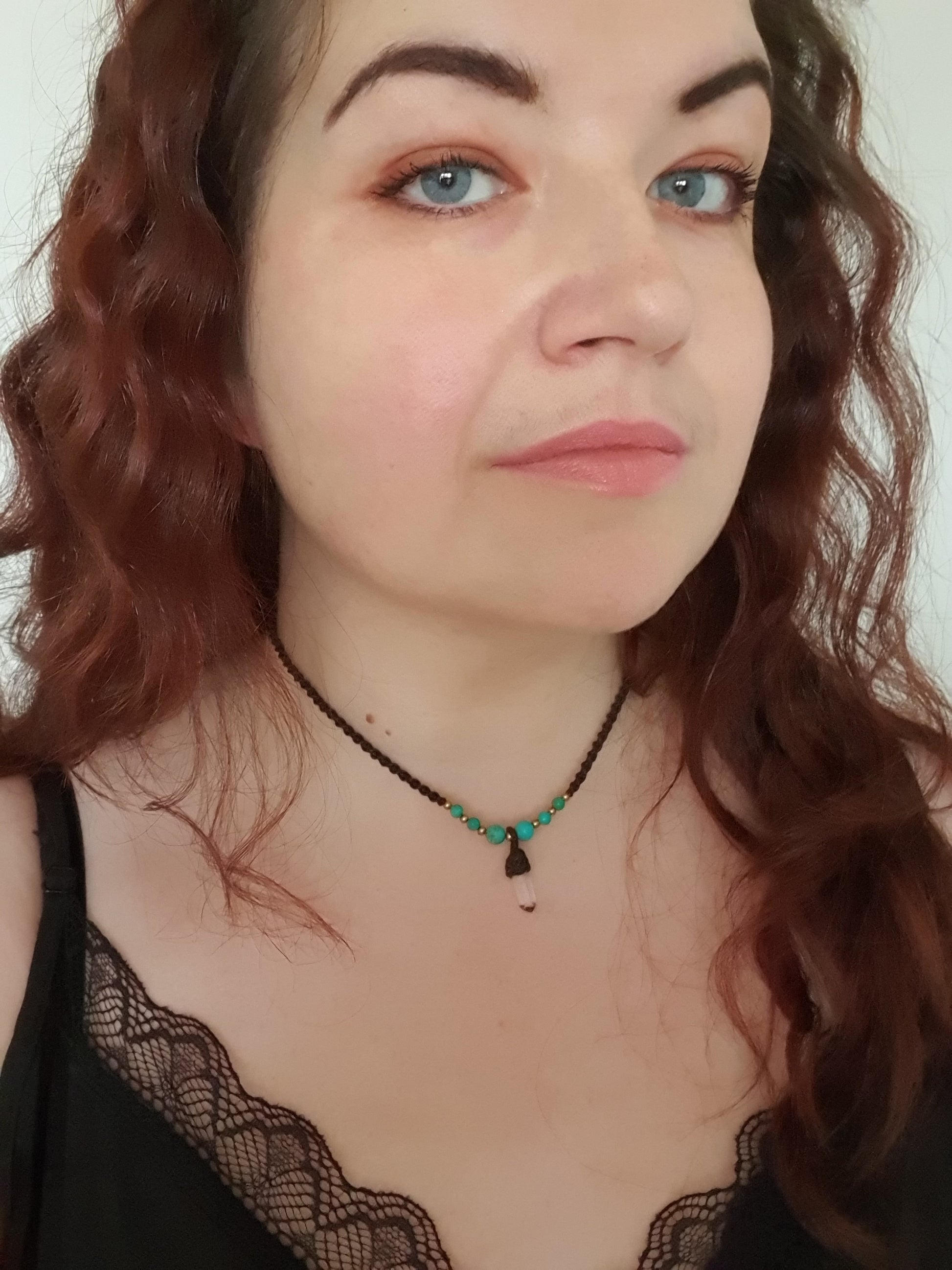 Please also be aware that due to the configuration of multiple screens and devices through which we're all looking, the shade of the waxed cord, crystals and metal may be different to the colour in reality. We've tried our best to capture the true shade in natural light.