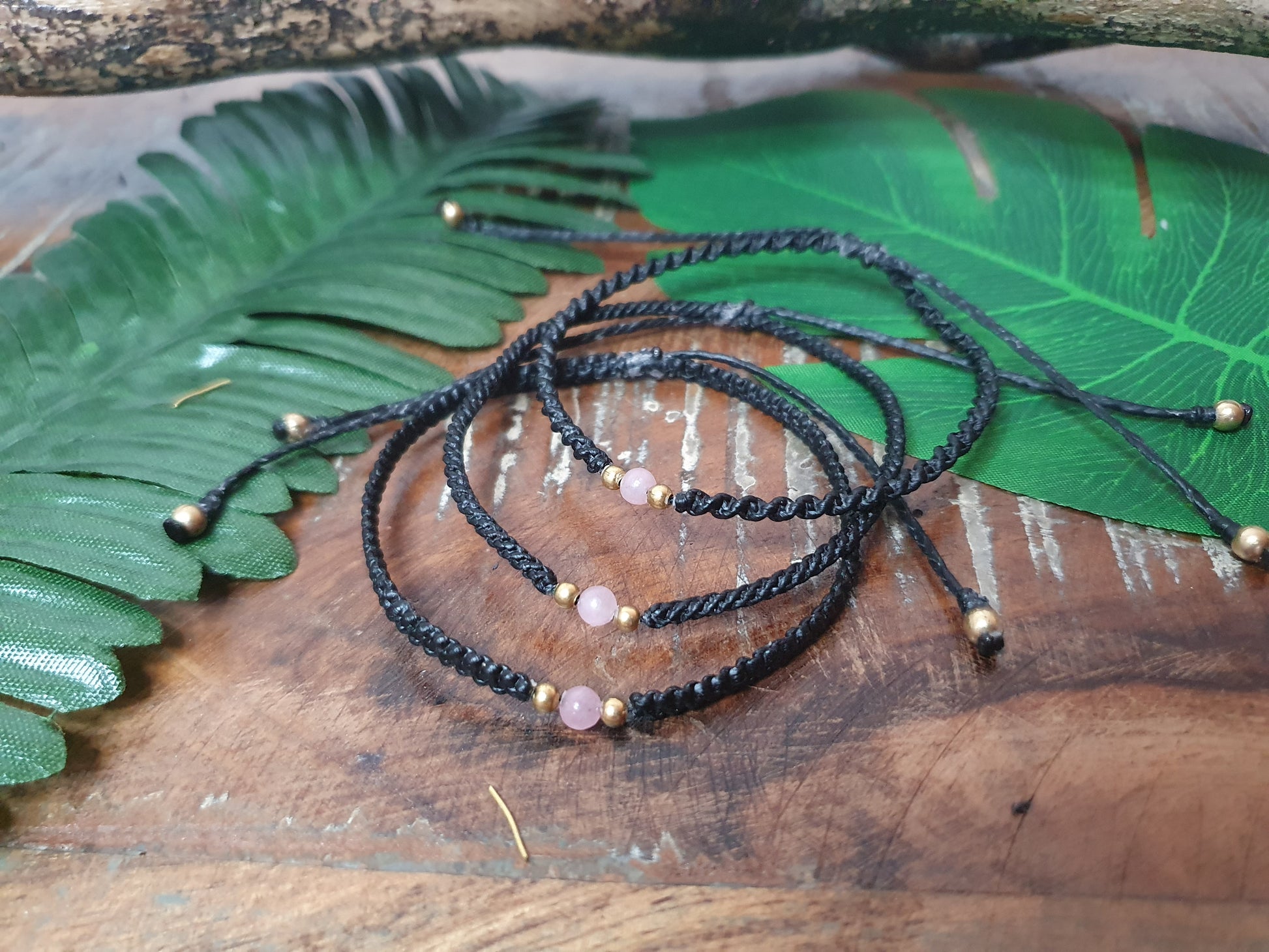 A mesmarising rose quartz crystal bracelet, knotted onto macramé cord, in a choice of THREE knot styles and THIRTY-TWO vibrant cord colours.