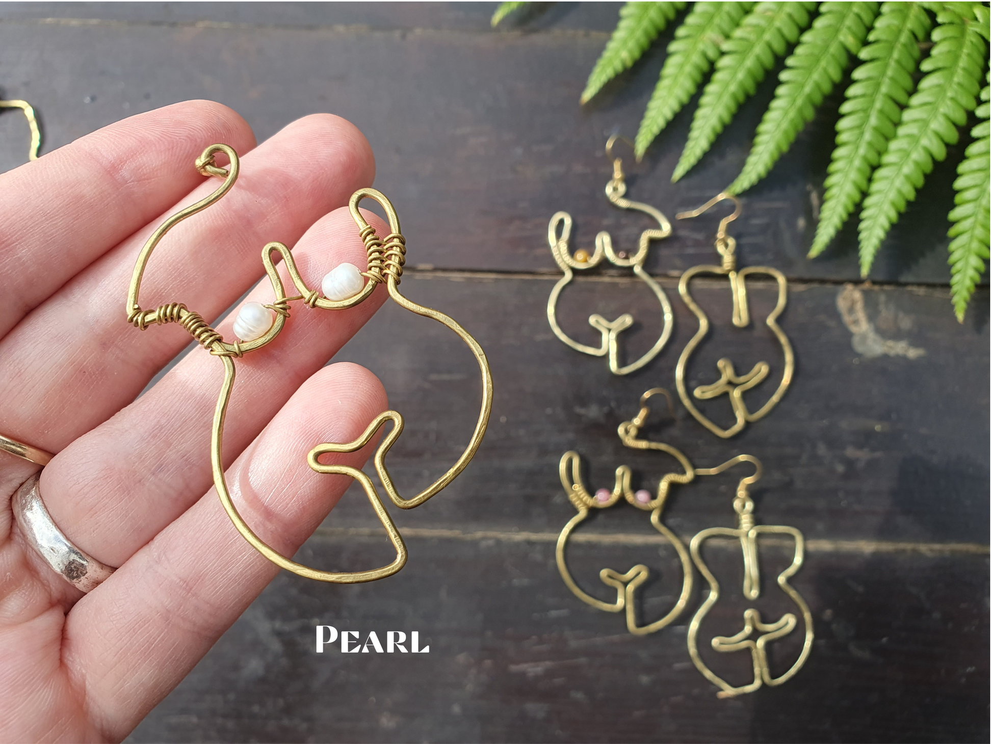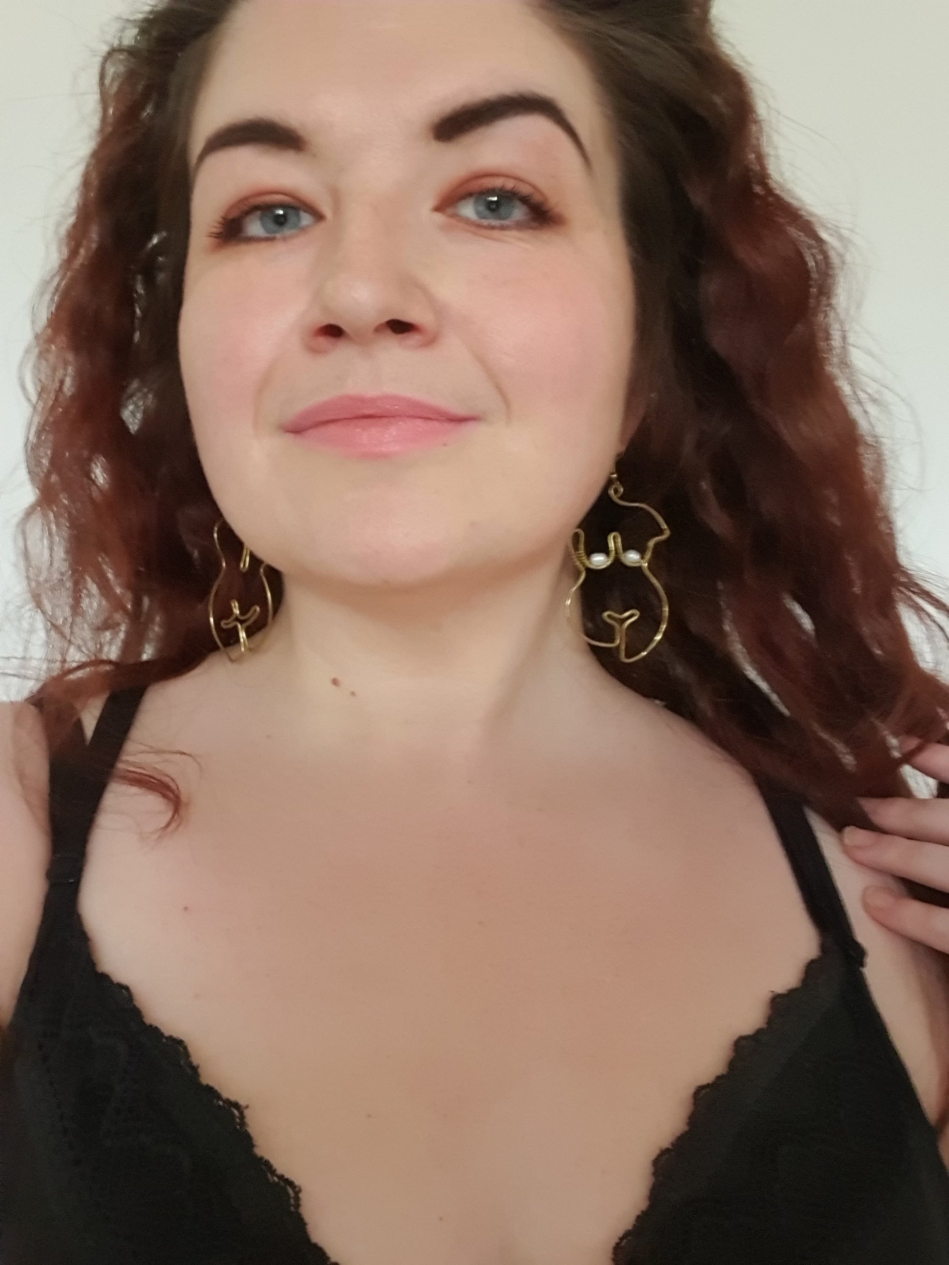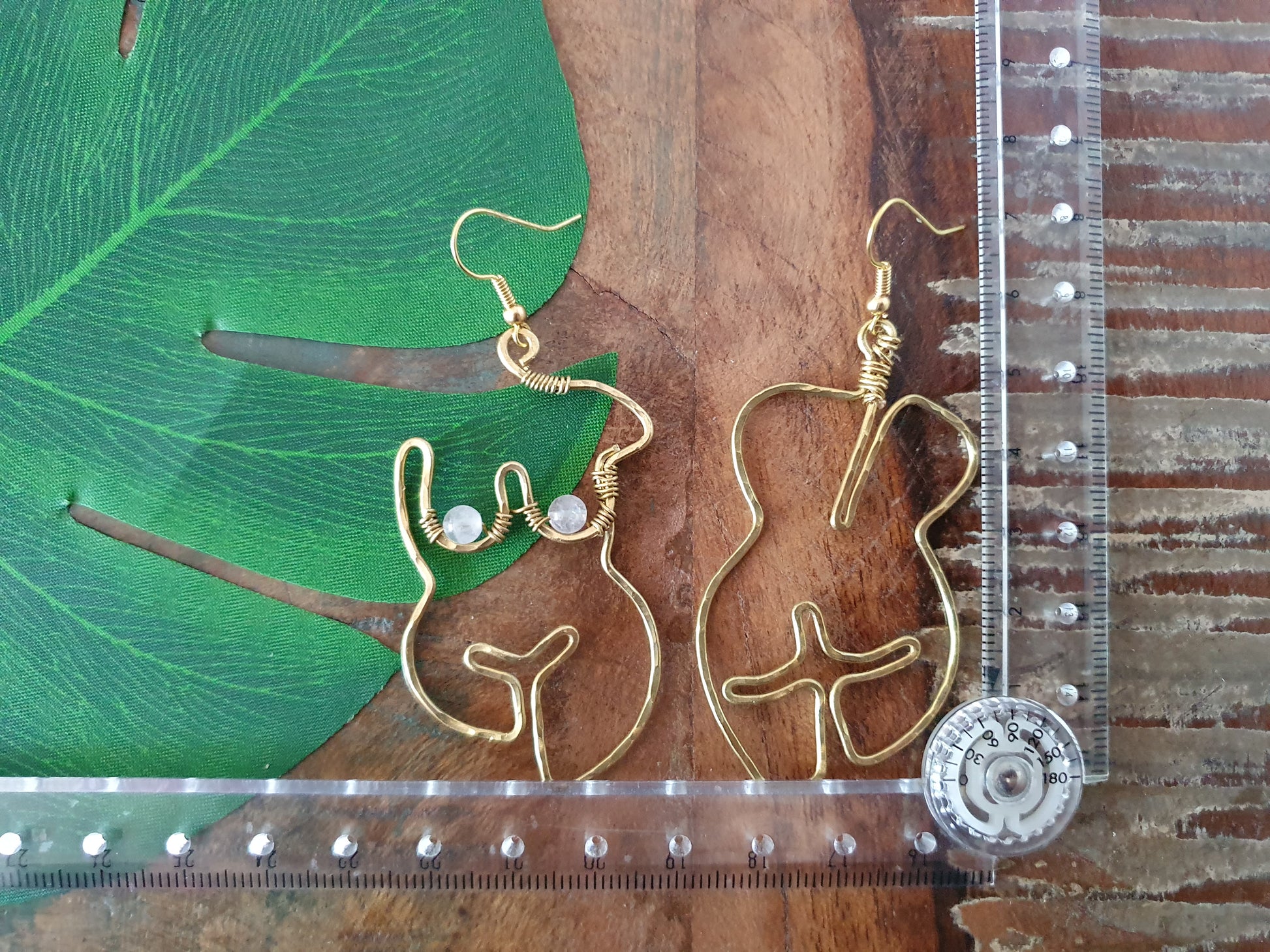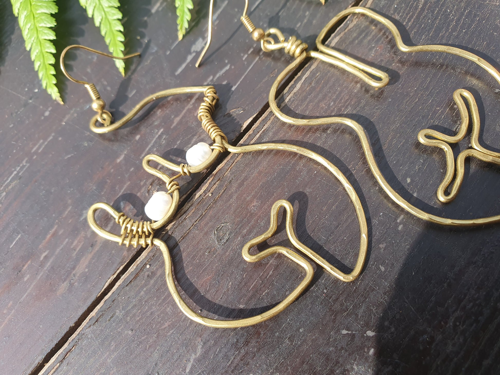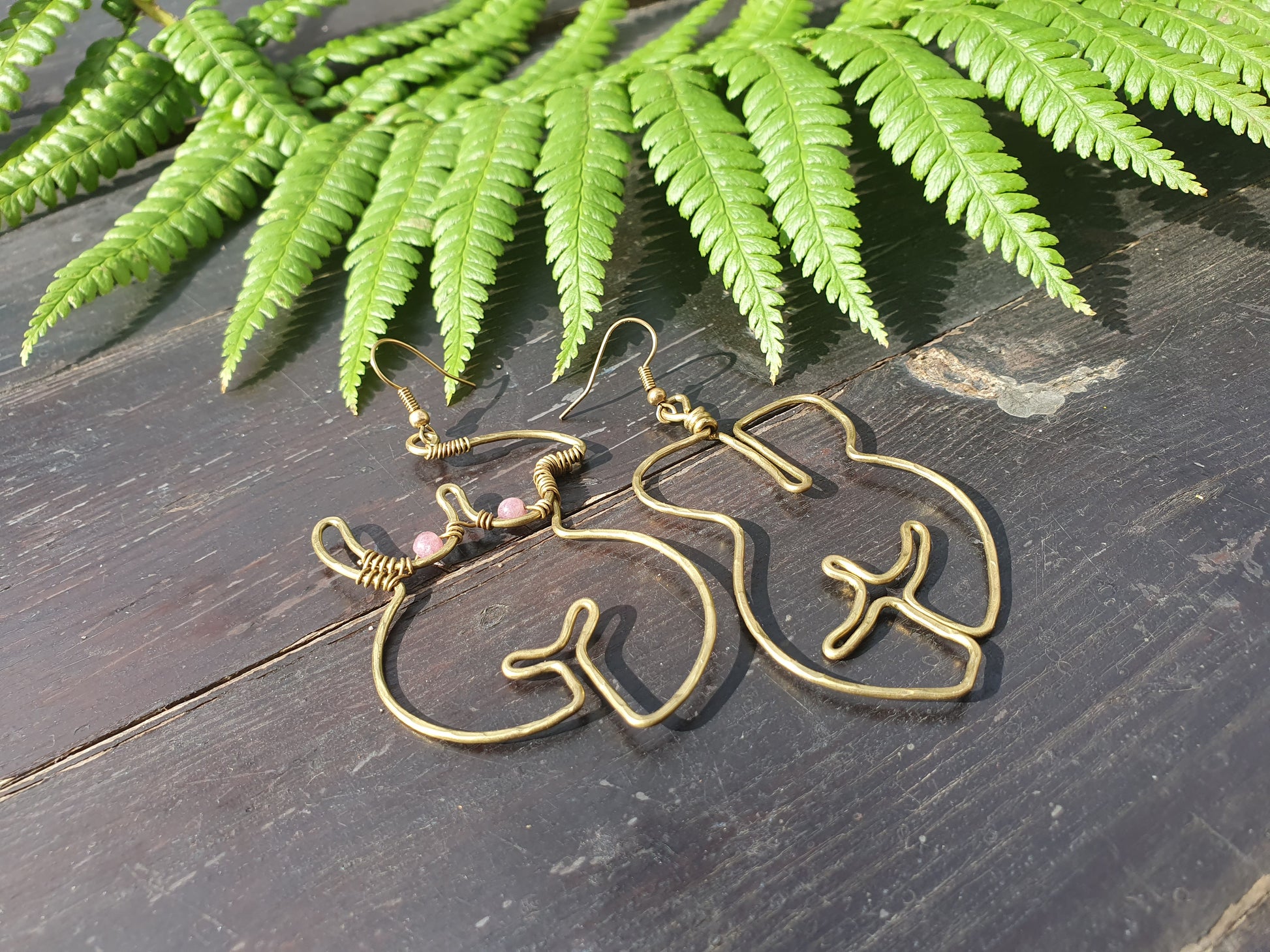 For pierced ears, these front and back female form earrings have been lovingly handmade from nickel-free brass wire which is strong yet light-weight, long-lasting and will retain their golden colour. Please see our FAQs for information about brass and its care.
