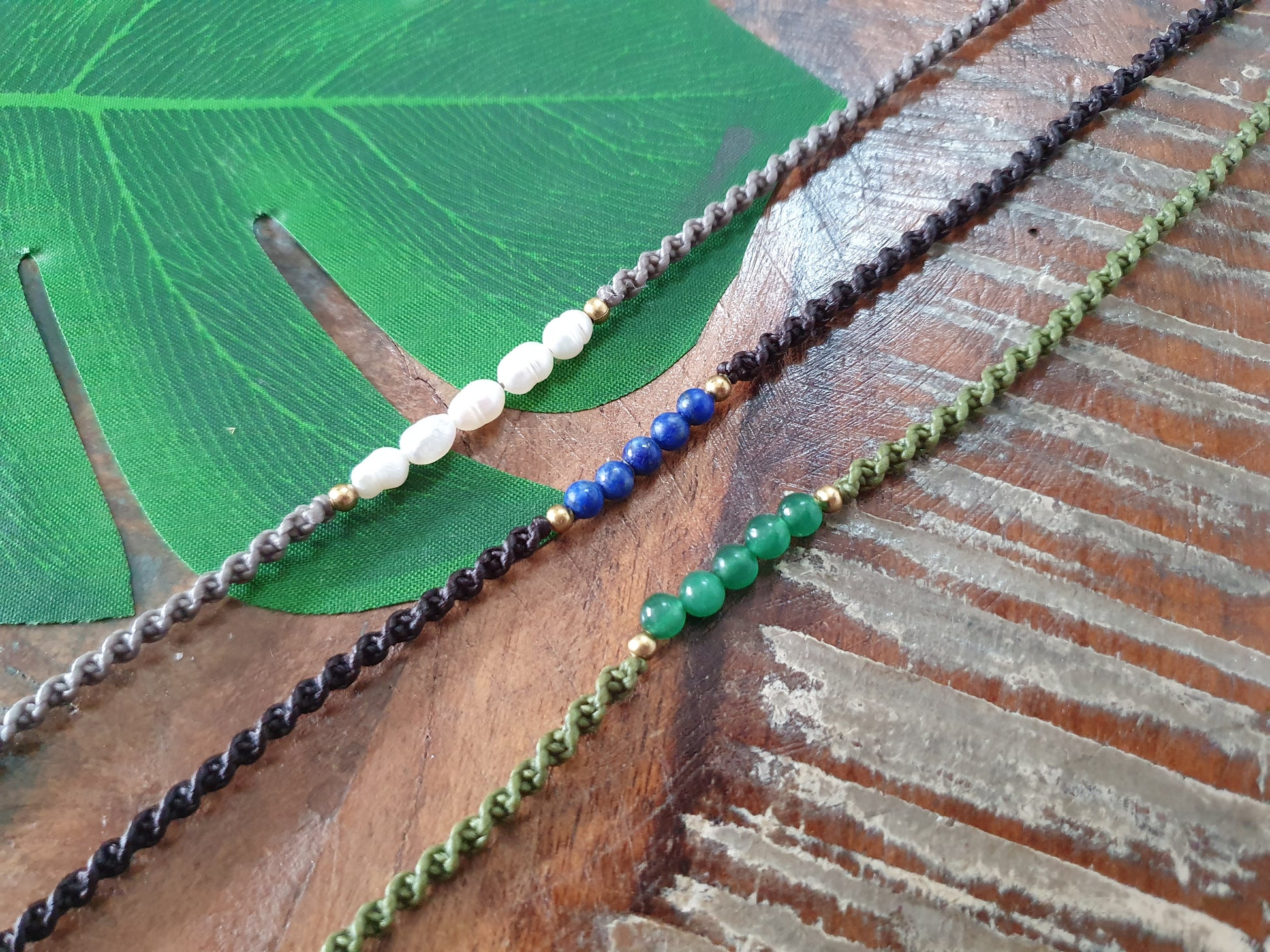 The very best waxed cord, straight from Thailand! Strong, vibrant and irresistible, it's waterproof and long-lasting. With the right level of TLC, waxed cord will last for years to come. Perfect for all day, everyday, beach, sea & shower (even with the small beads). Little ones should be supervised in our kids bracelets.