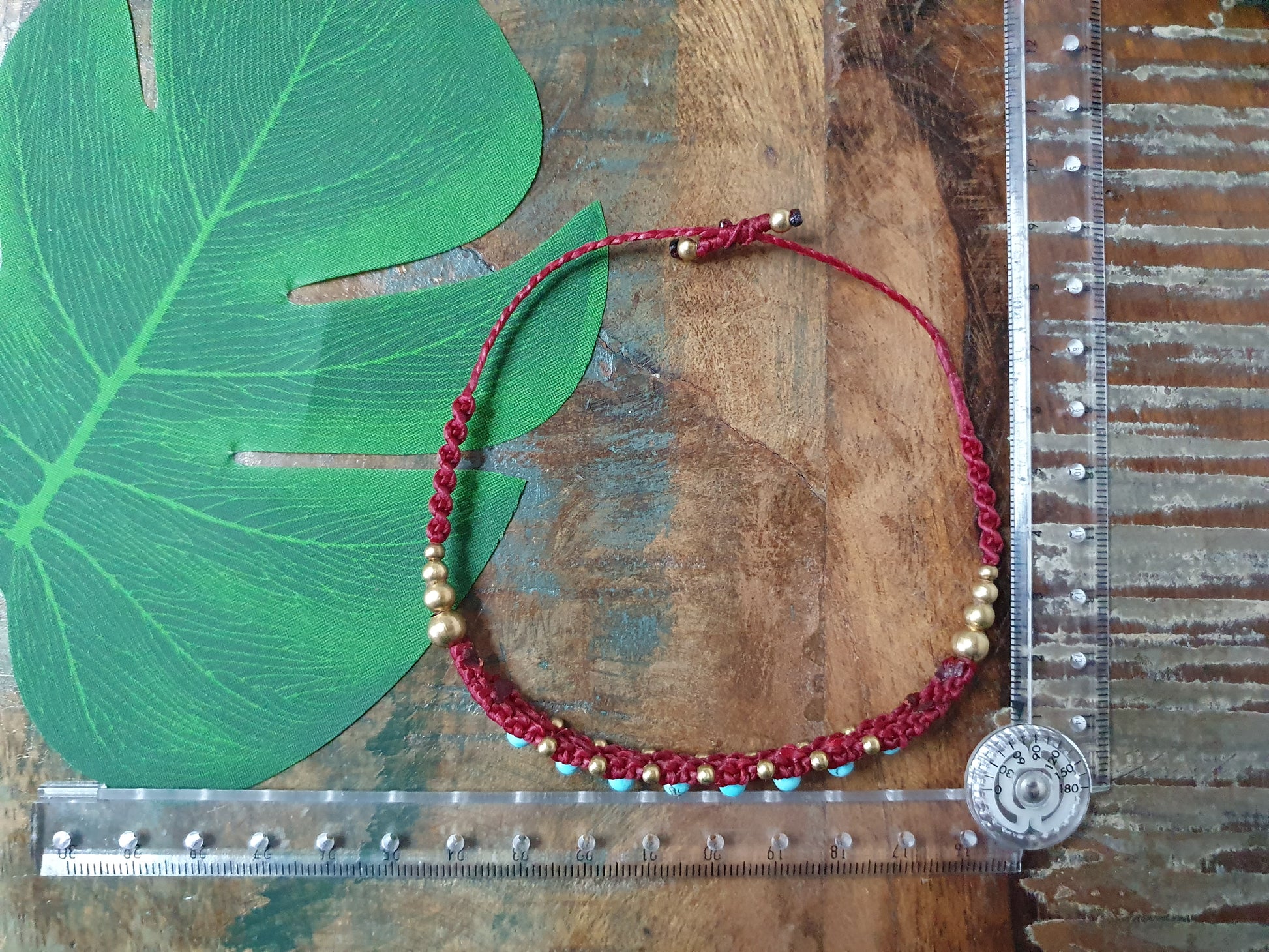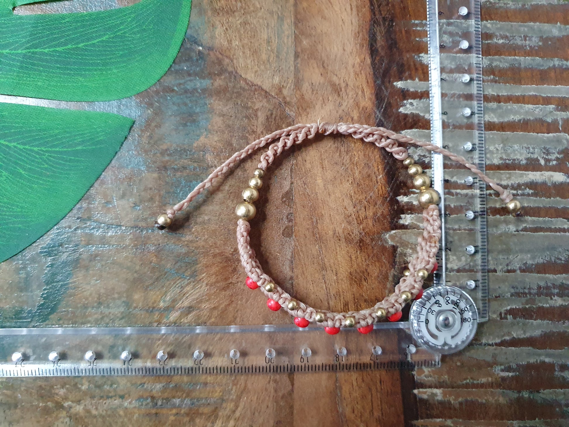This personalised macrame bracelet is make from woven waxed cord which is durable and waterproof meaning it can be worn at all times and last for years to come. The brass beads and bells are solid 100% brass and of course, nickel-free.