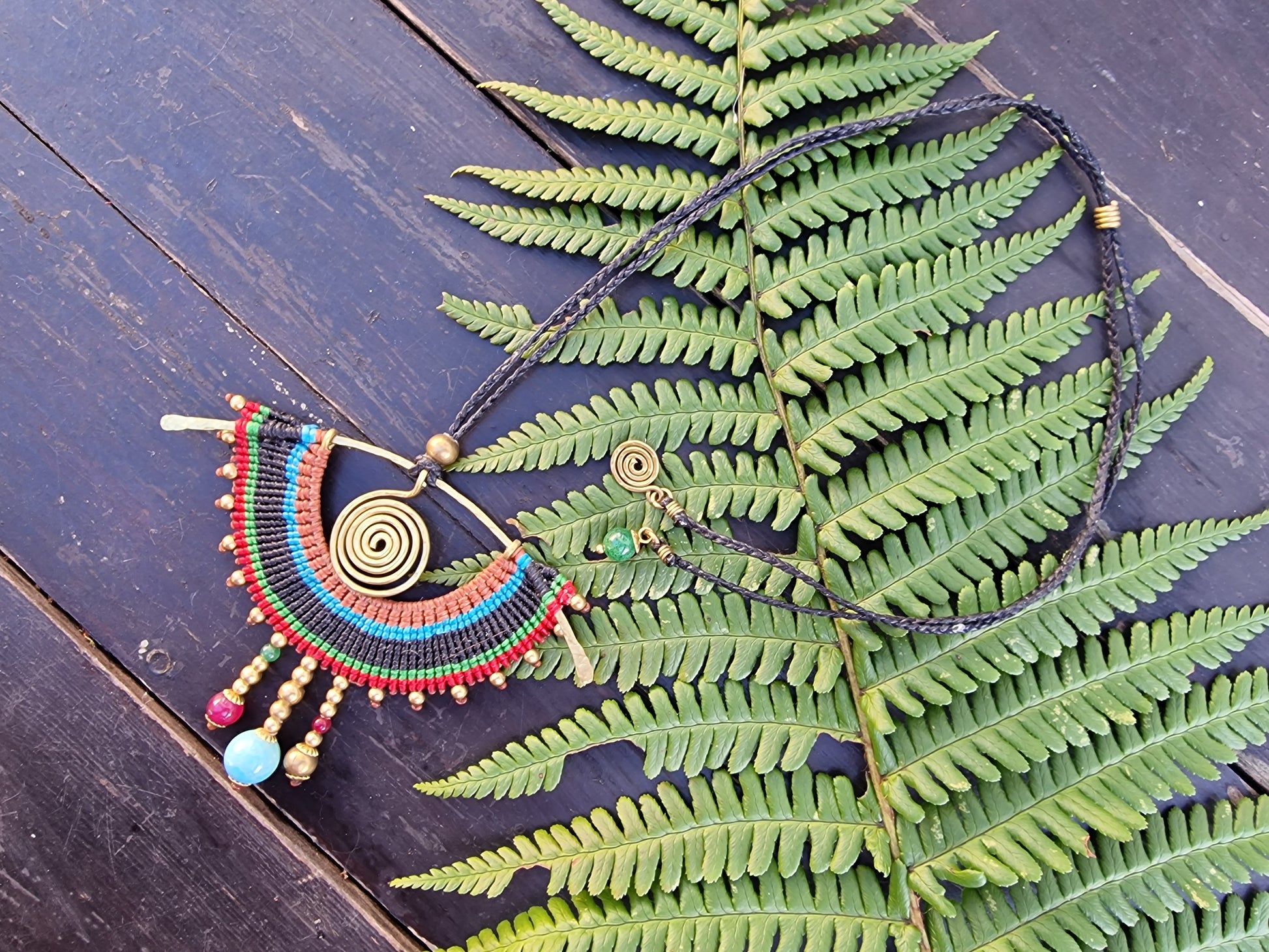 This boho necklace has been lovingly handmade from nickel-free brass wire and vibrant Thai waxed cord which is strong and water-proof.