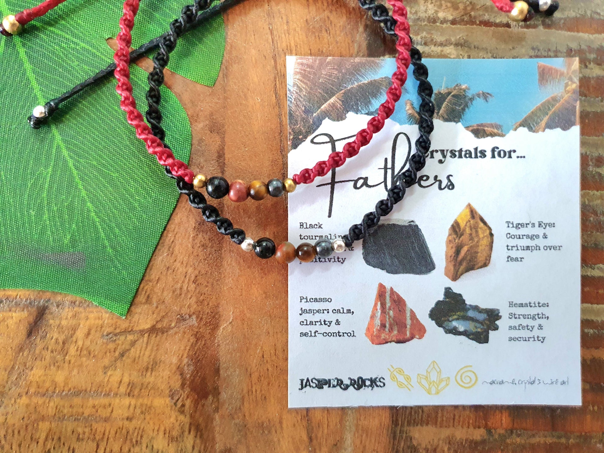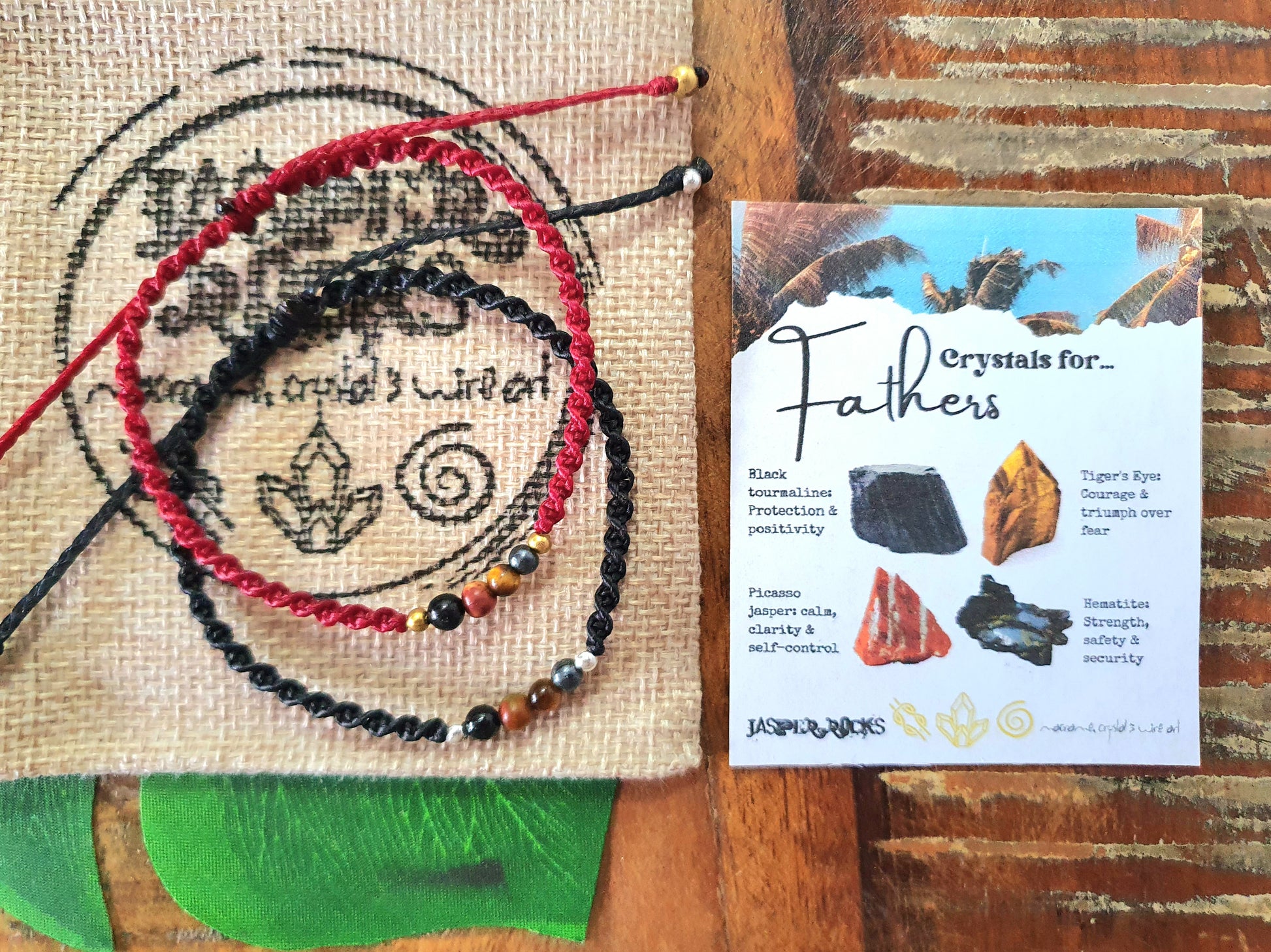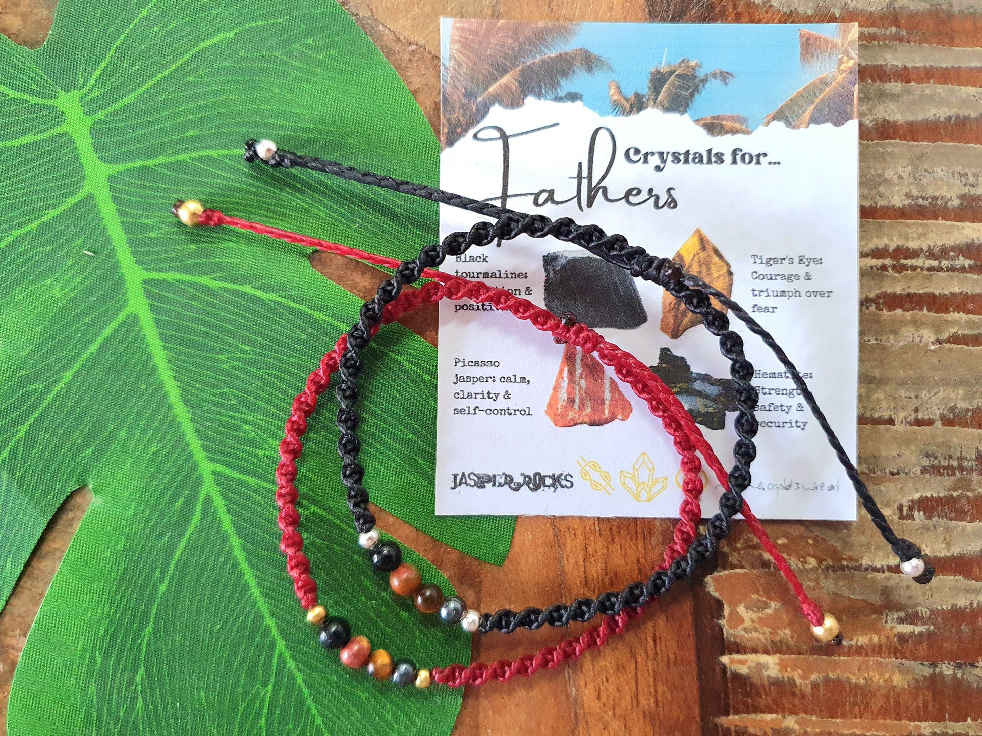 We have researched and selected the ultimate aligned crystal intentions for the dads. Each crystal bracelet is comprised of a round 4mm stone of: