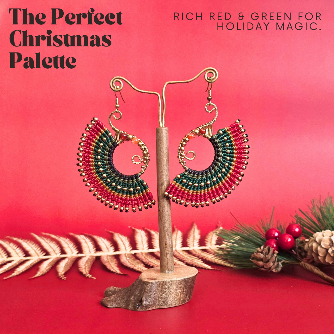 Bring the warmth, colour and energy of Christmas into your jewellery collection with these festive macramé earrings — bold, meaningful and beautifully handmade.