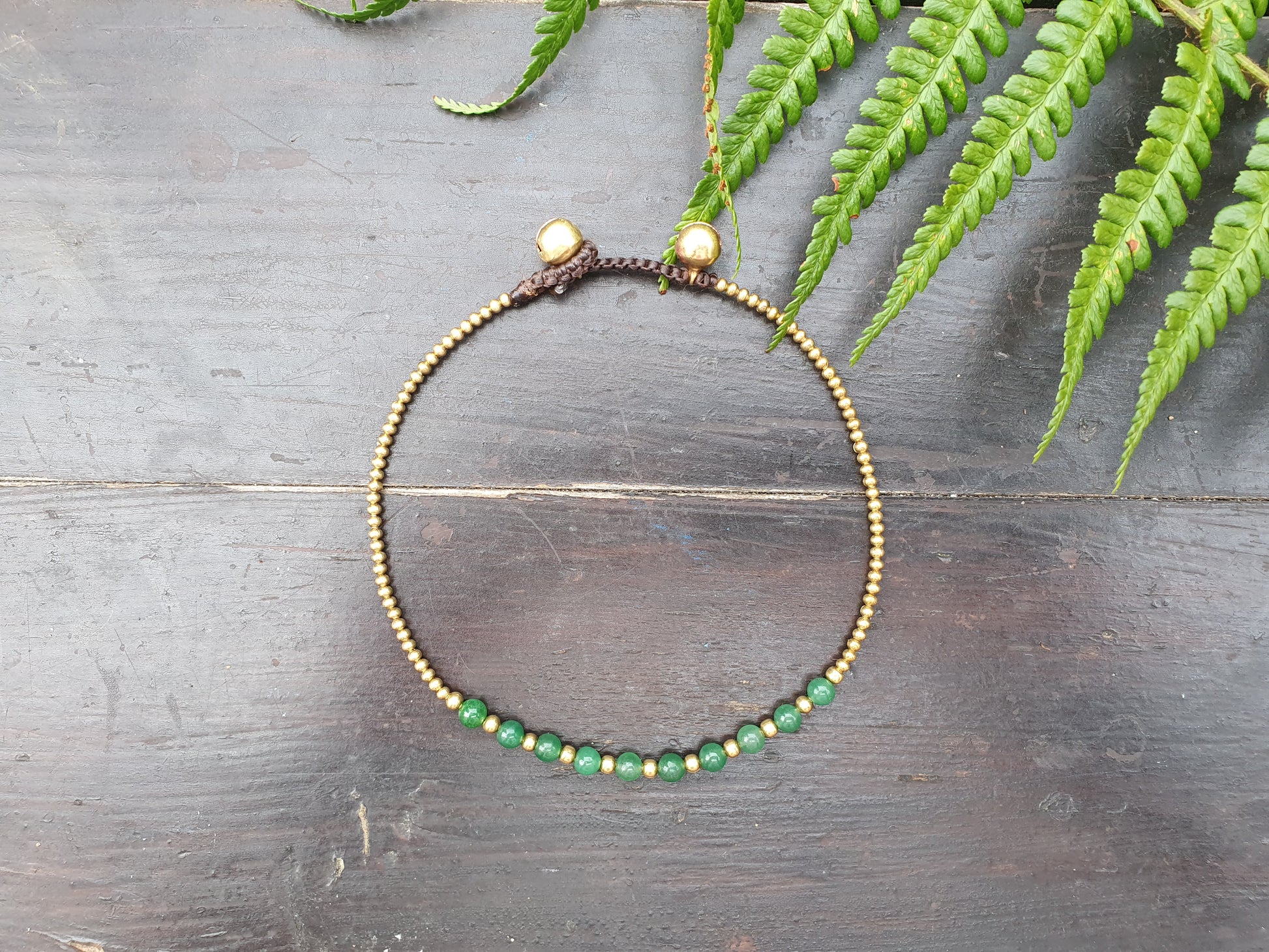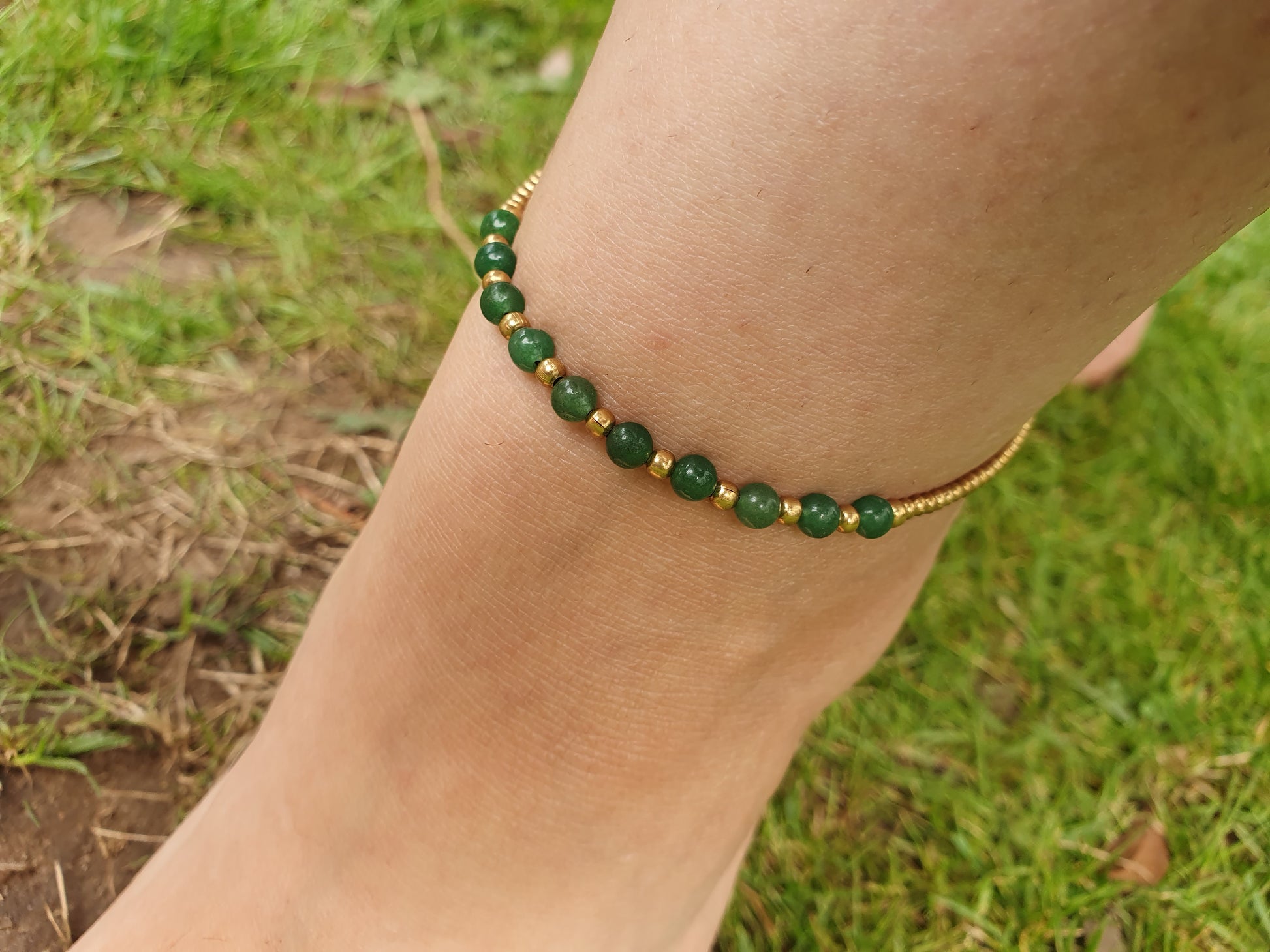 Jade stone anklet,green anklet,gold bead anklet,green gemstone anklet,gold stone anklet,gold bead anklet,thai anklet,boho anklet,beach jewel