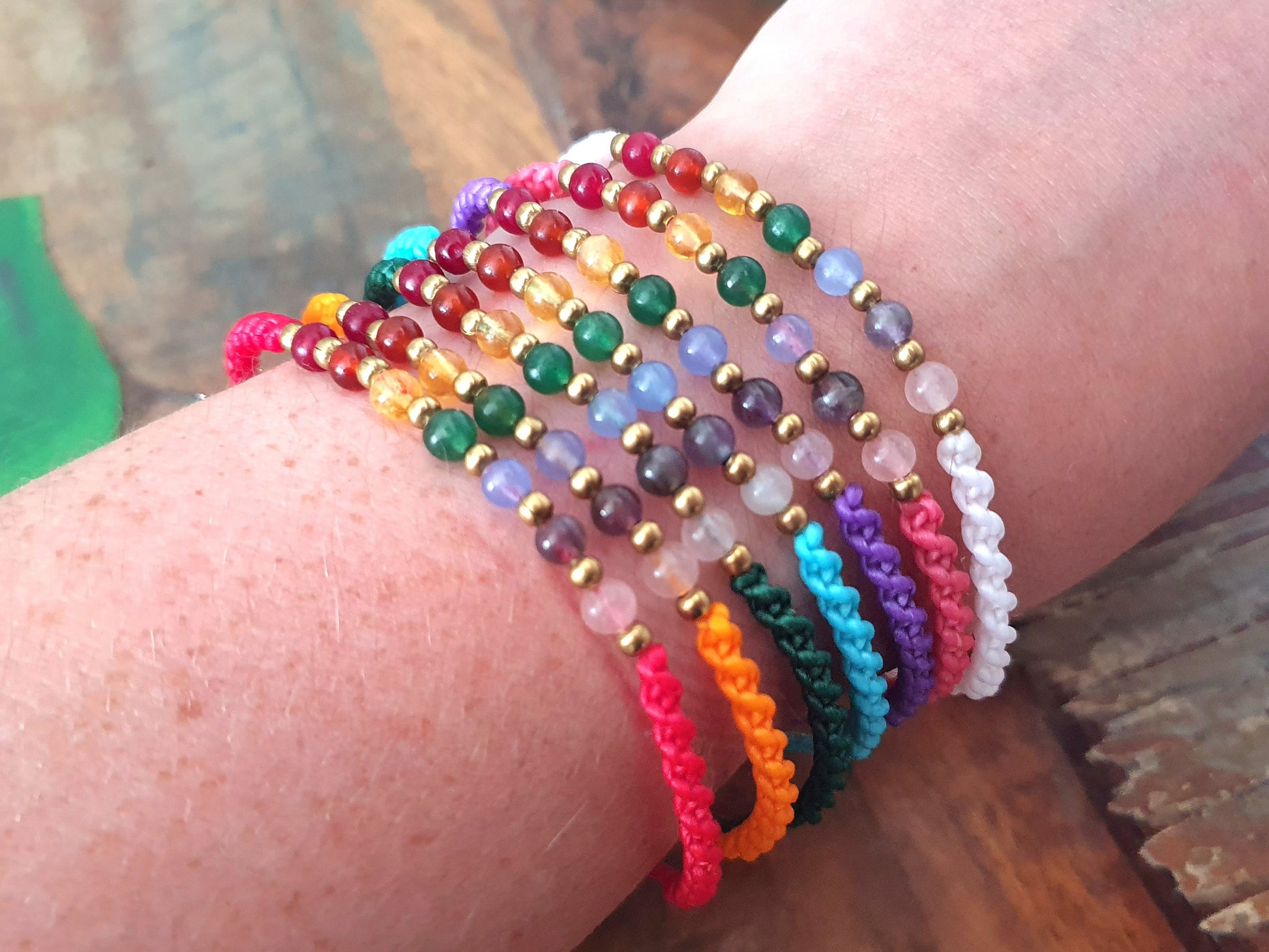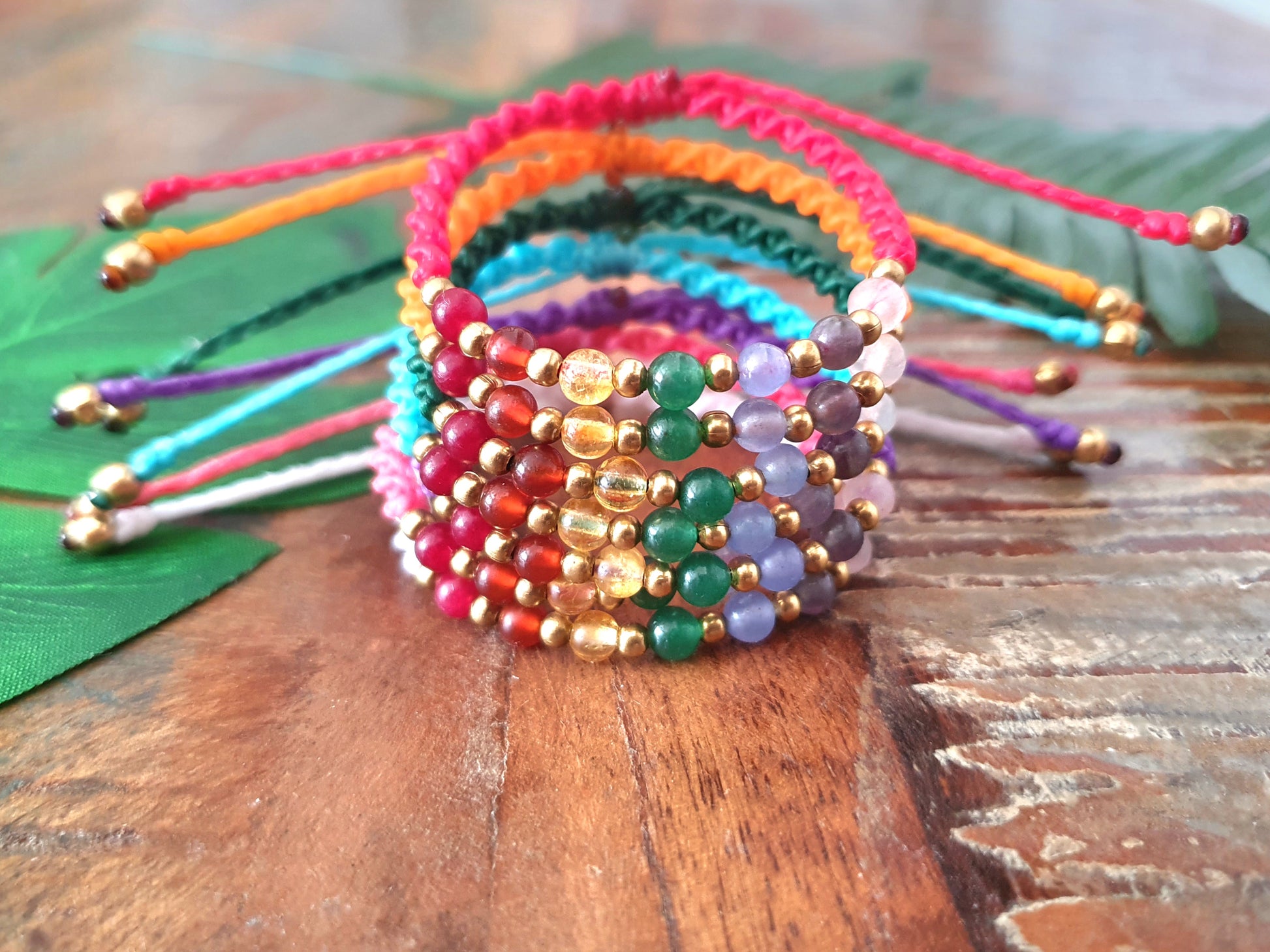 Please do swipe through all the product pictures to get a comprehensive view of the gemstones, as well as both the thread design choices, adjustible lengths of the bracelet and 32 cord colour choices on offer! One listing purchase is for ONE BRACELET.
