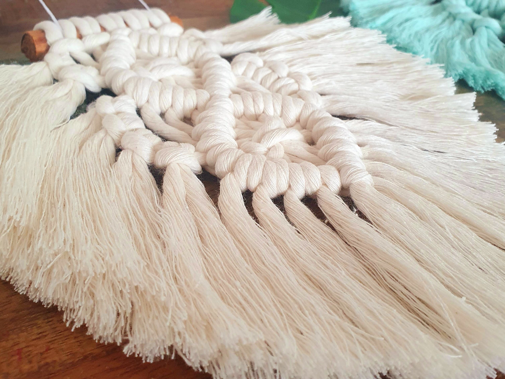 Instead of a manual, we invite to follow our personally-made tutorial on YouTube where we take you step-by-step through the process of making a macrame leaf ornament. In the YouTube tutorial I make the macrame leaf with 5mm cotton rope in White. We know you'll get the hang of it in no time and can't wait to see your finished hearts!