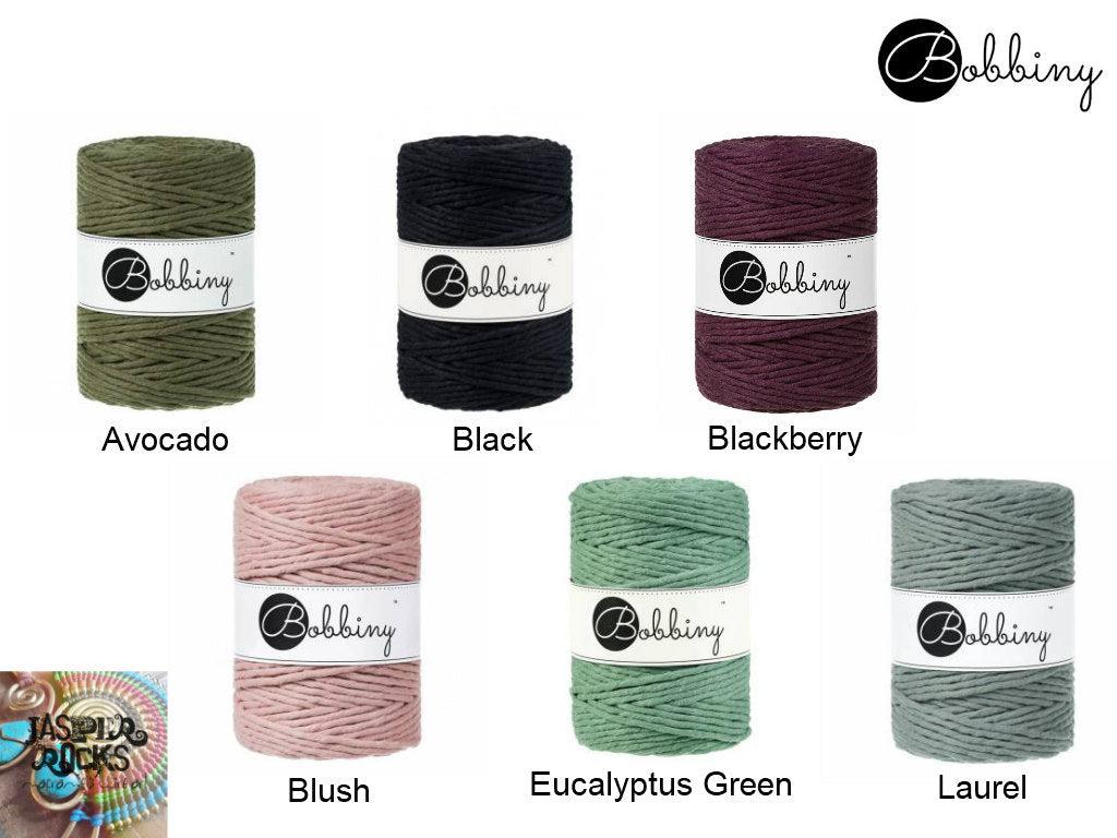 Choose from 12 Bobbiny recycled cord rope colours measuring 5mm; soft, luxious and sustainable.