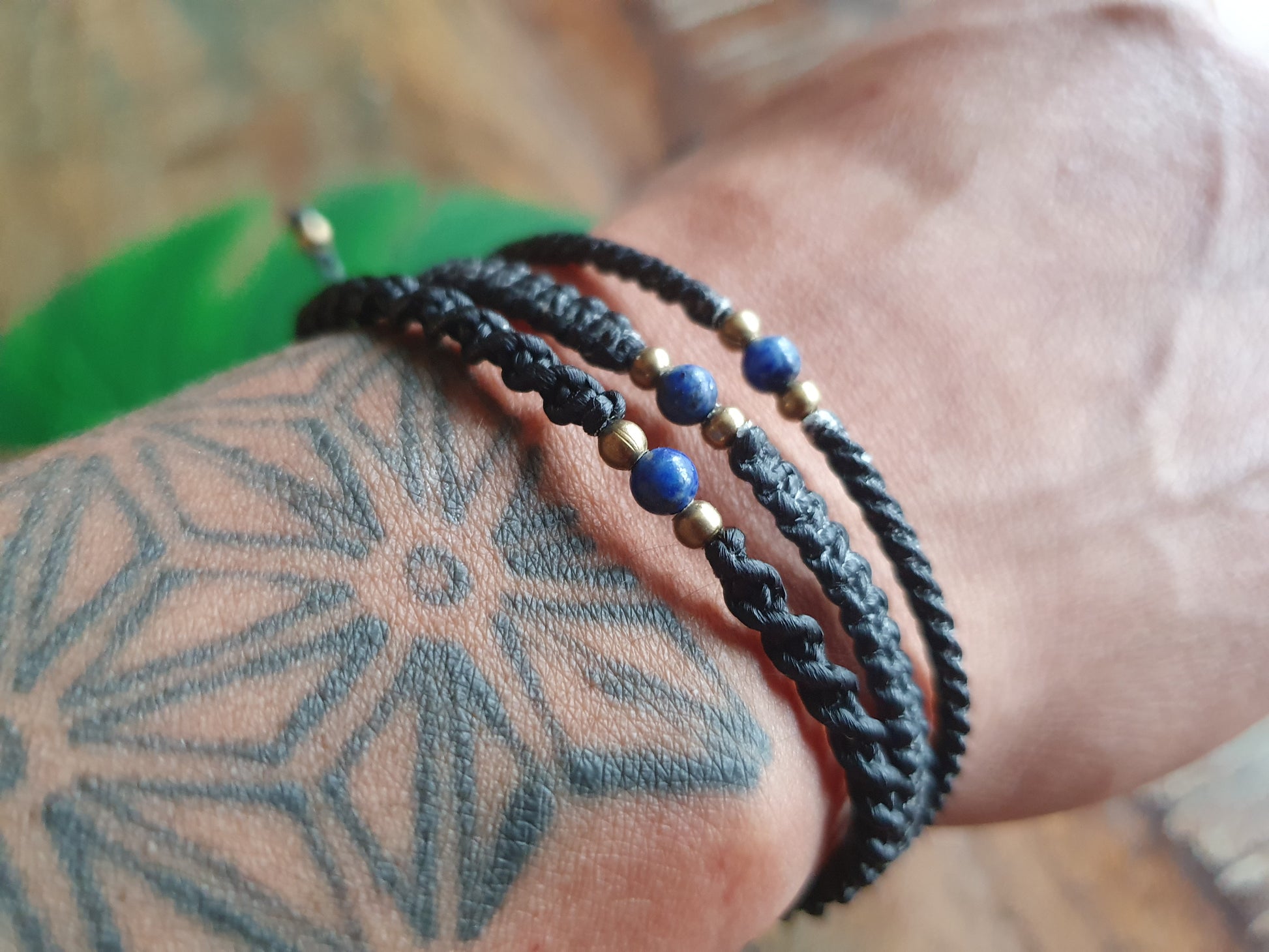 A mesmarising 4mm lapis lazuli crystal bracelet, knotted onto macramé cord, in a choice of THREE knot styles and THIRTY-TWO vibrant cord colours.