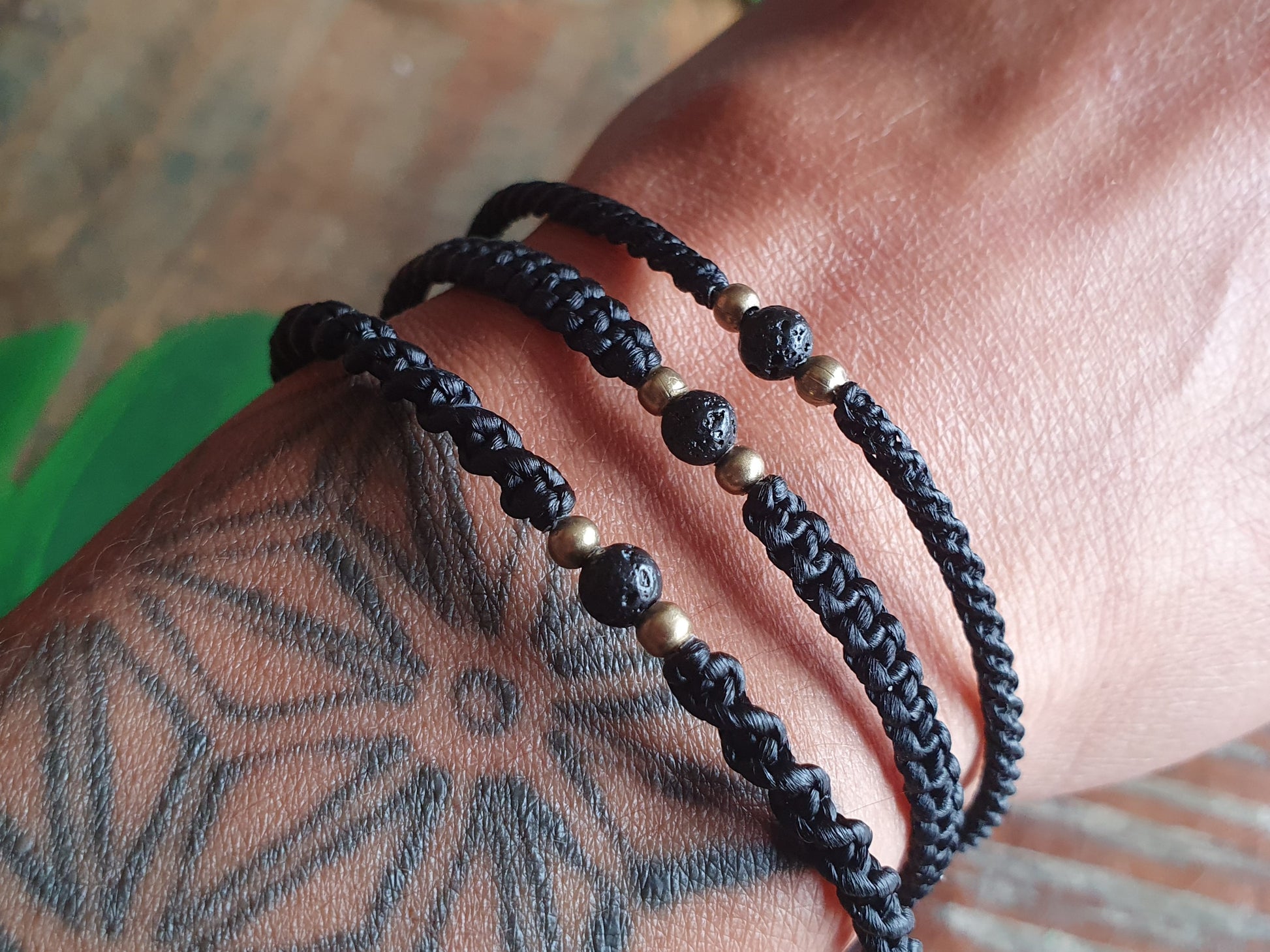 This boho bracelet has been lovingly handmade from nickel-free 100% brass beads and skillfully woven waxed cord which is strong and water-proof.