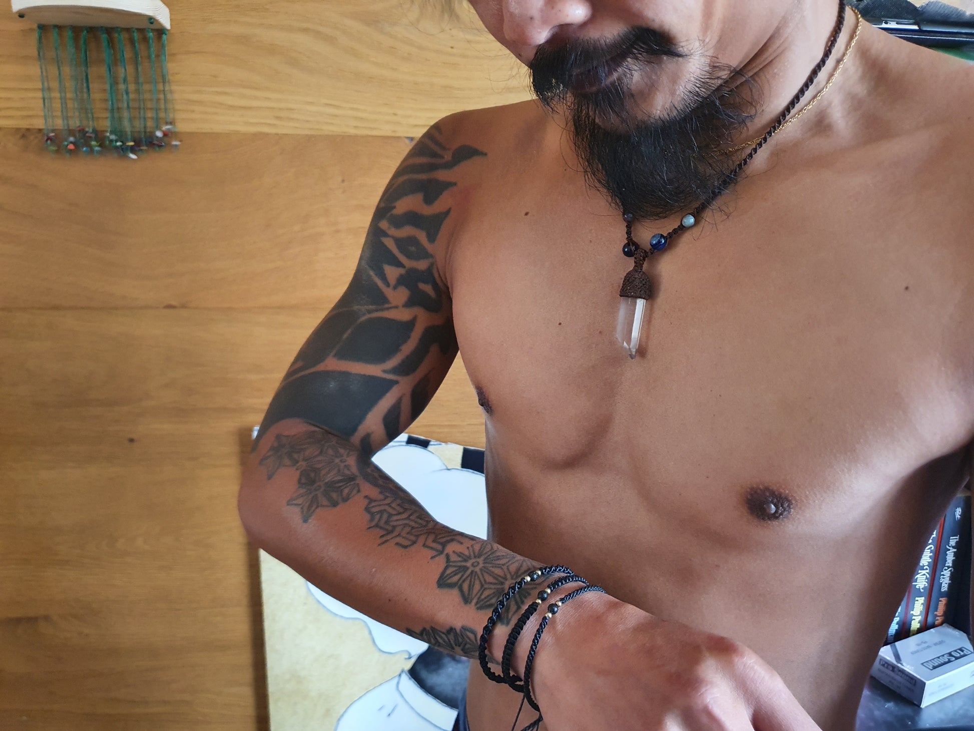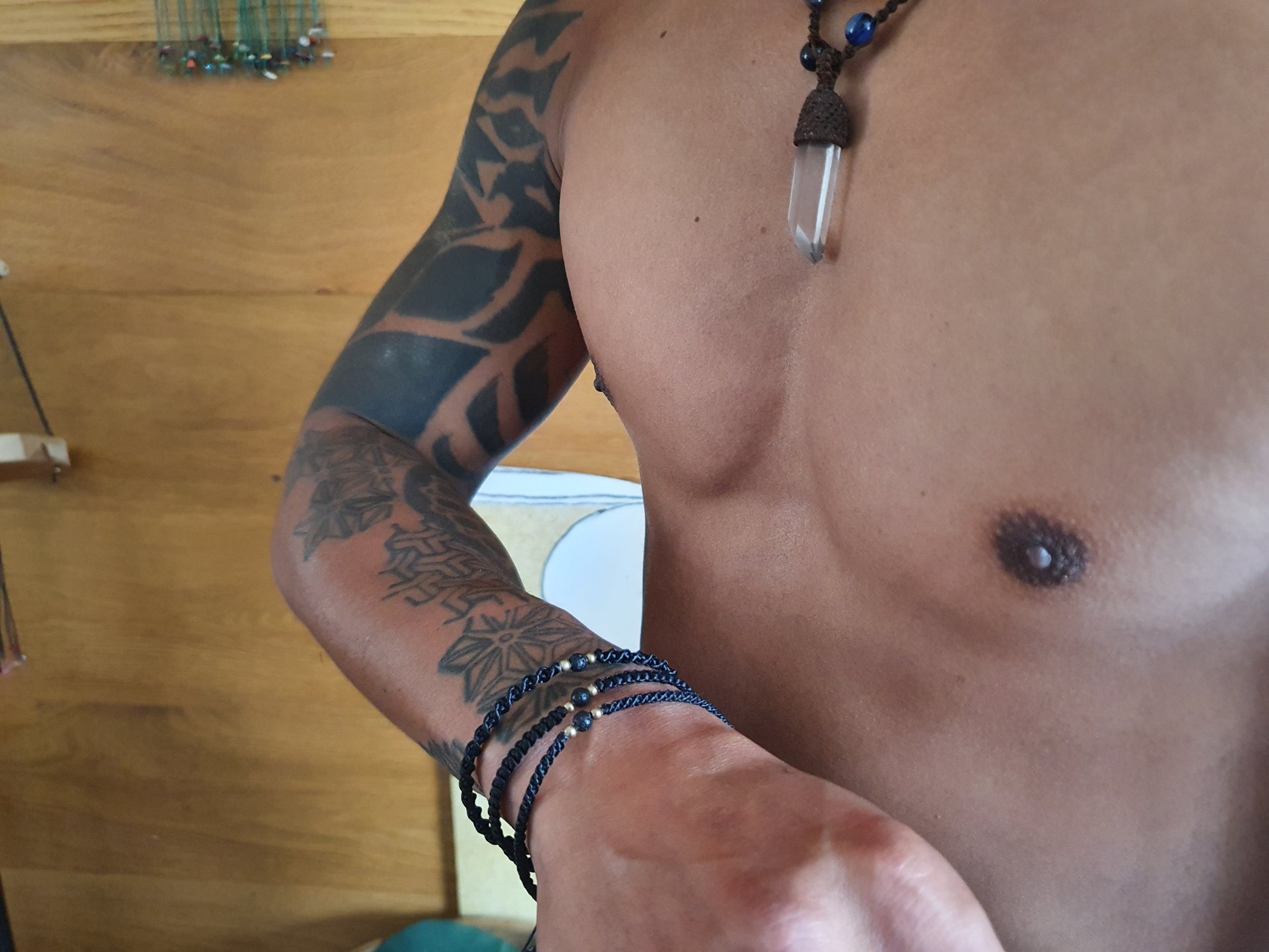 Please also be aware that due to the configuration of multiple screens and devices through which we're all looking, the shade of the waxed cord, crystals and metal may be different to the colour in reality. We've tried our best to capture the true shade in natural light.