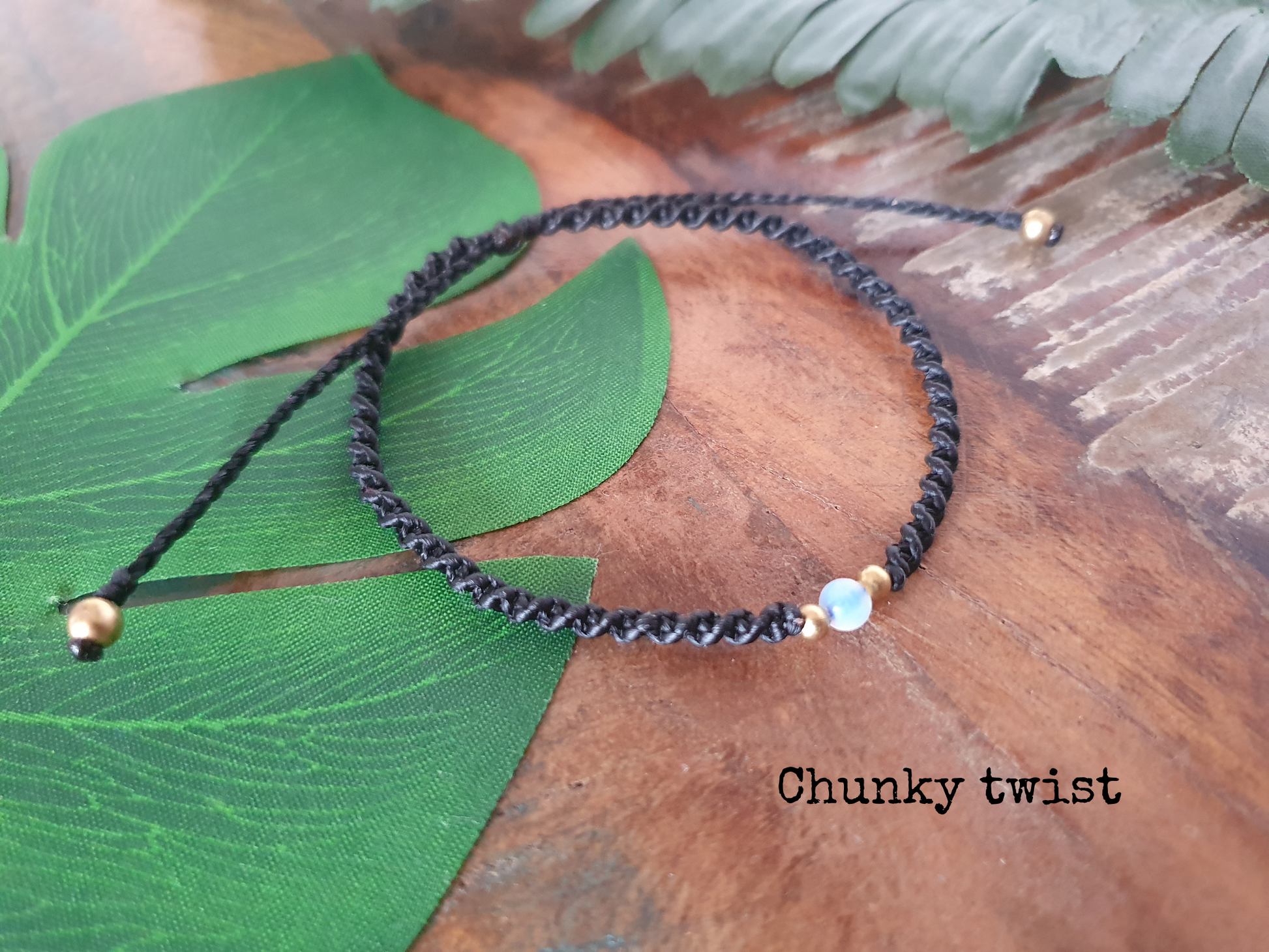 The very best waxed cord, straight from Thailand! Strong, vibrant and irresistible, it's waterproof and long-lasting. With the right level of TLC, waxed cord will last for years to come. Perfect for all day, everyday, beach, sea & shower (even with the small beads). Little ones should be supervised in our kids bracelets.