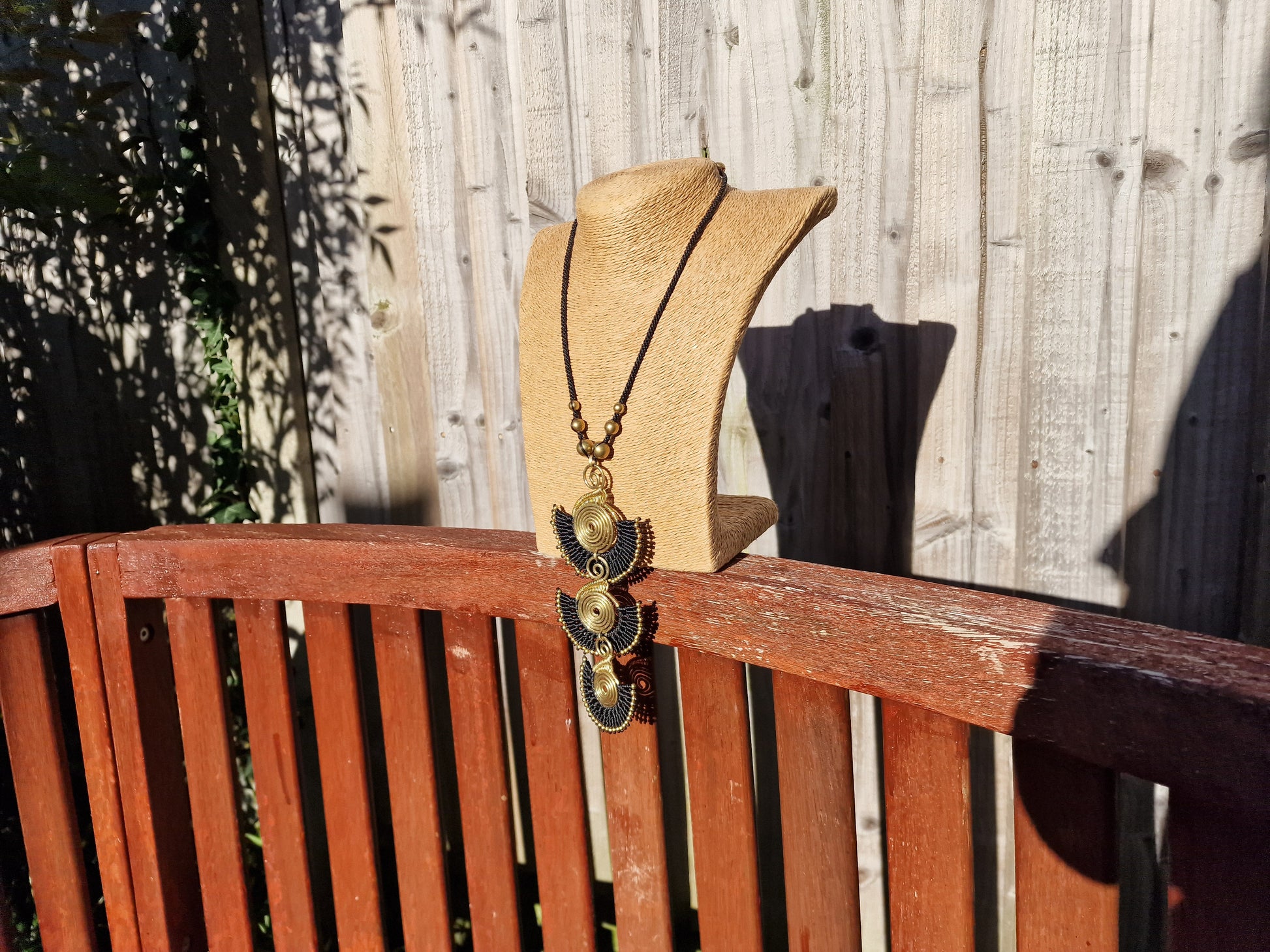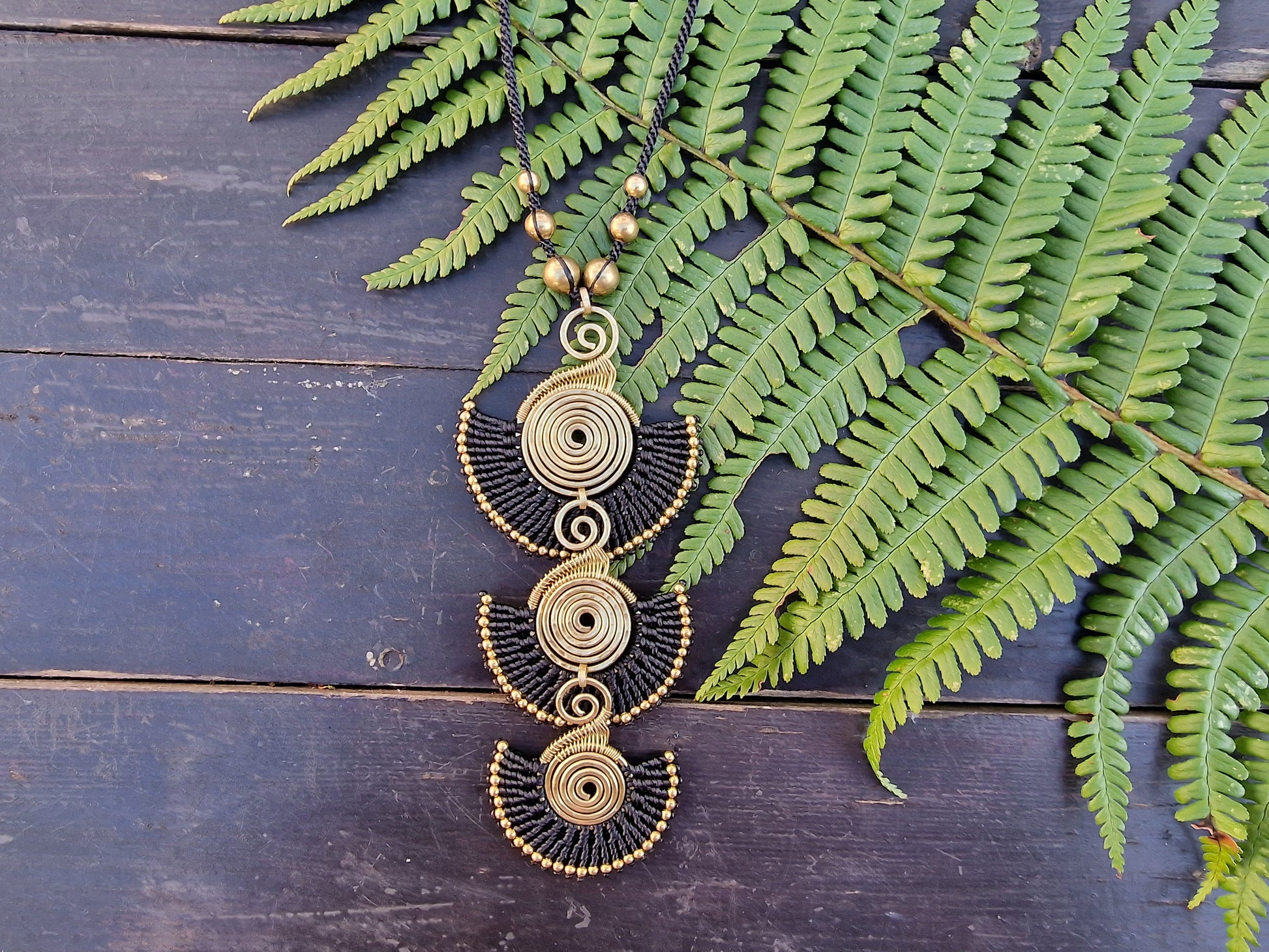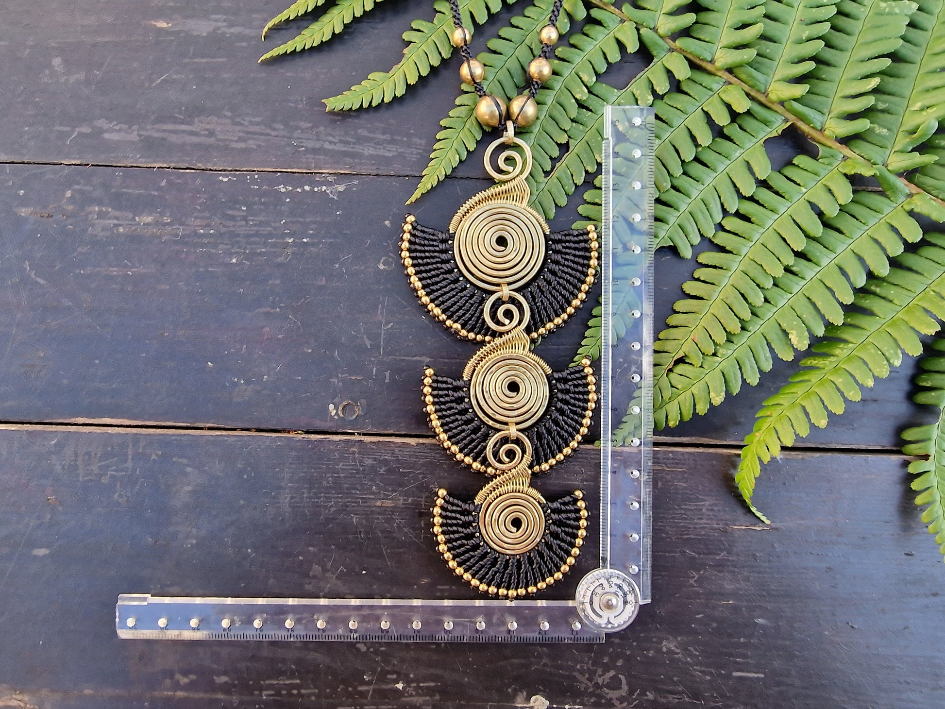 Pharoah necklace, triple spiral necklace, african jewellery, egyptian jewellery, art deco, macrame necklace, statement necklace, gold spiral