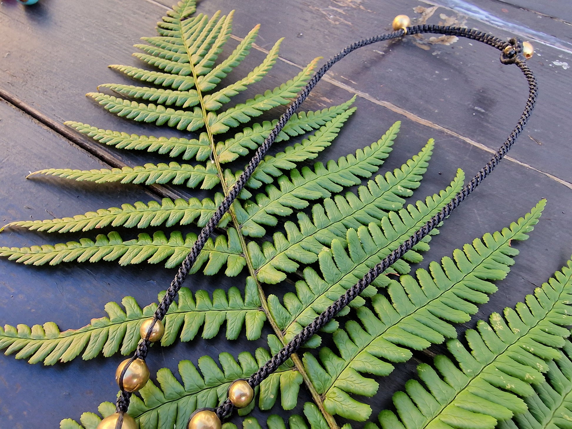 This boho necklace has been lovingly handmade from nickel-free brass wire and vibrant Thai waxed cord which is strong and water-proof.